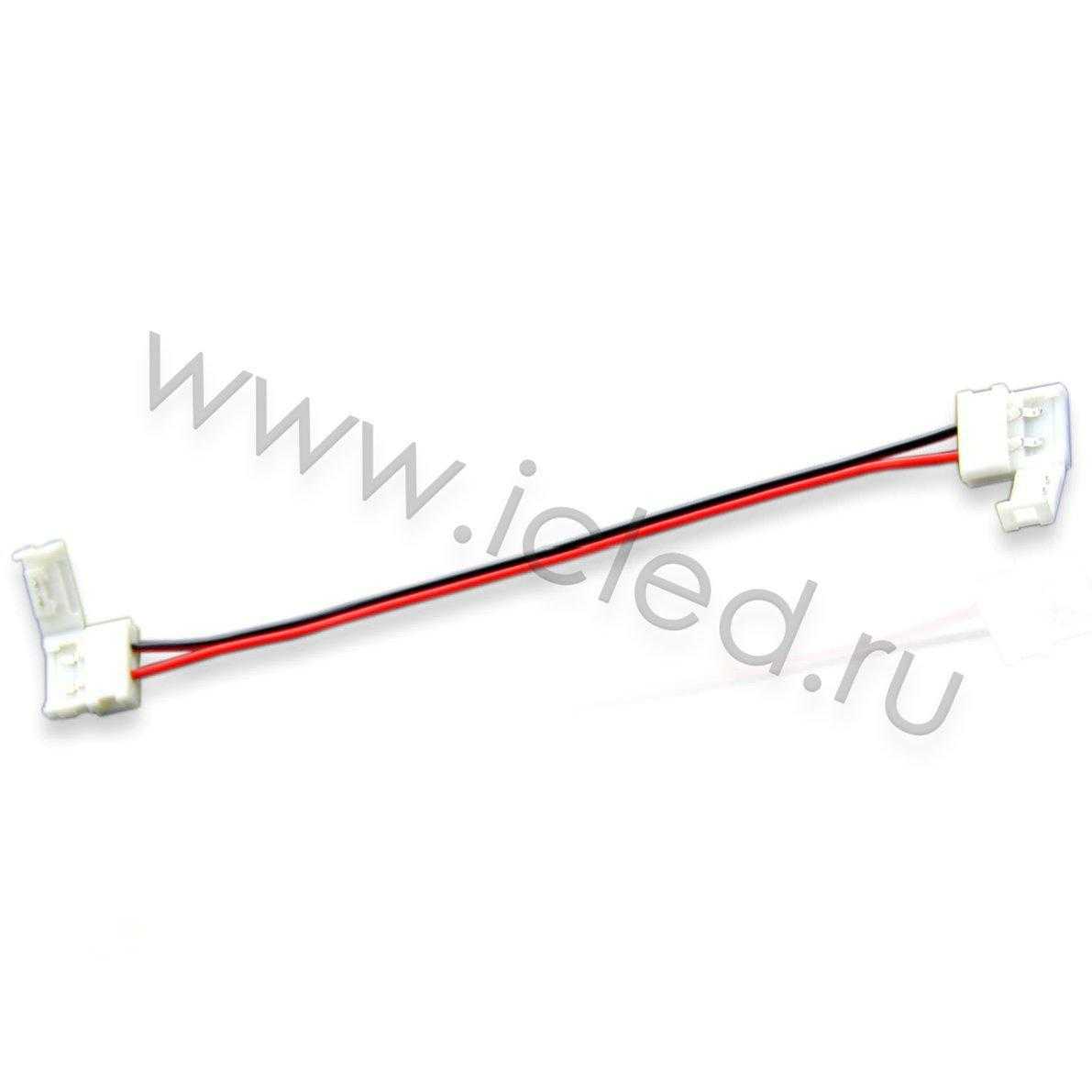Коннектор двухсторонний (2 коннектора) с проводами для одноцветной светодиодной ленты шириной 10мм. Длина провода 135мм.