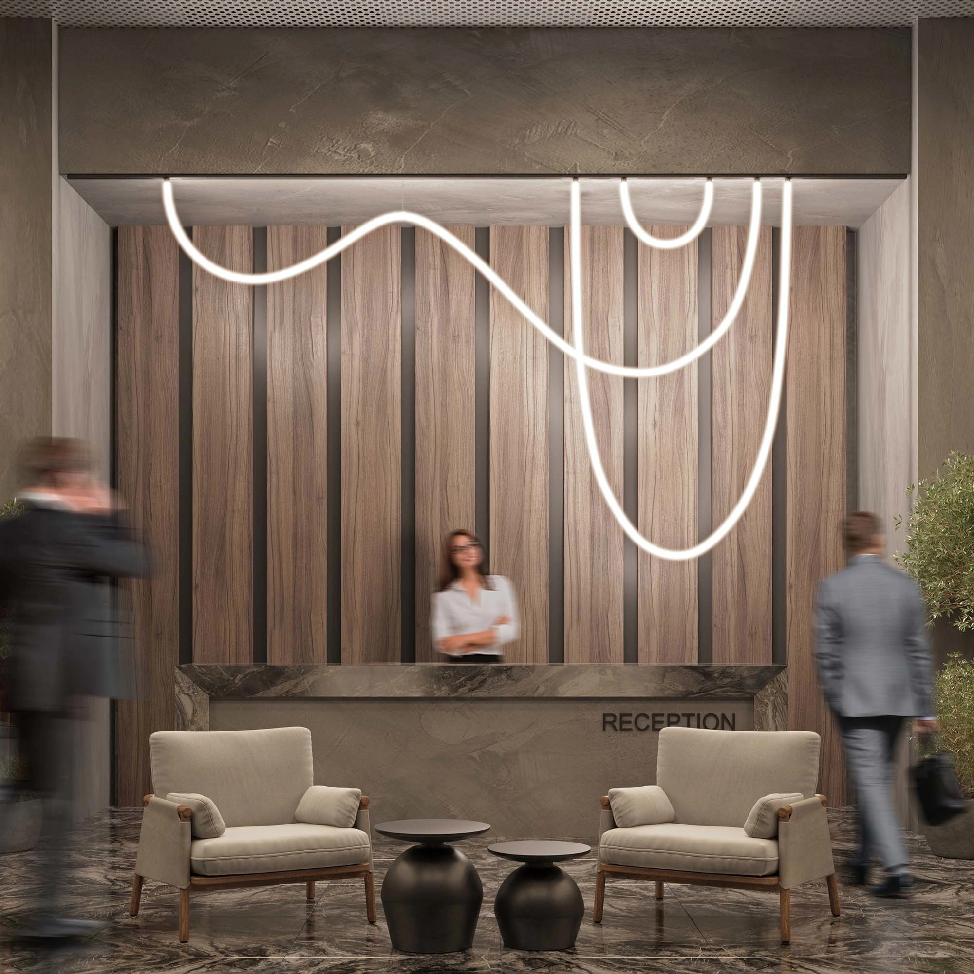 Светильник MAG-FLEX-TUBE-ELASTIC-L1000-14W Day4000 (BK, 360 deg, 48V) мощностью 14 Вт с уникальным корпусом из гибкого неона диаметром 30 мм предназначен для магнитных треков серии MAG-FLEX. Высокая световая эффективность 67 лм/Вт, индекс цветопередачи CRI>90, световой поток 940 лм и сверх широкий угол излучения 360° обеспечивают качественное освещение с точной передачей цветовых оттенков, что удовлетворяет требованиям большинства проектов. Силиконовый материал неона обеспечивает мягкое, равномерное освещение дневного белого цвета (4000 К). Гибкая форма светильника, использование подвесов и креплений для трековой системы (приобретаются отдельно) позволяют воплотить разные идеи декоративного оформления. Корпус с защитой от пыли IP20 подходит для установки внутри помещений, где нет контакта с водой или другими жидкостями. Комбинируя светильники разного размера данной серии TUBE-ELASTIC, располагая их на разном уровне, можно создавать оригинальные световые композиции. Пульсация менее 1% обеспечивает комфортное освещение без мерцания. Предназначен для основного и декоративного освещения в жилых, коммерческих, торговых и др. помещениях. Драйвер для подключения 48В поставляется отдельно.