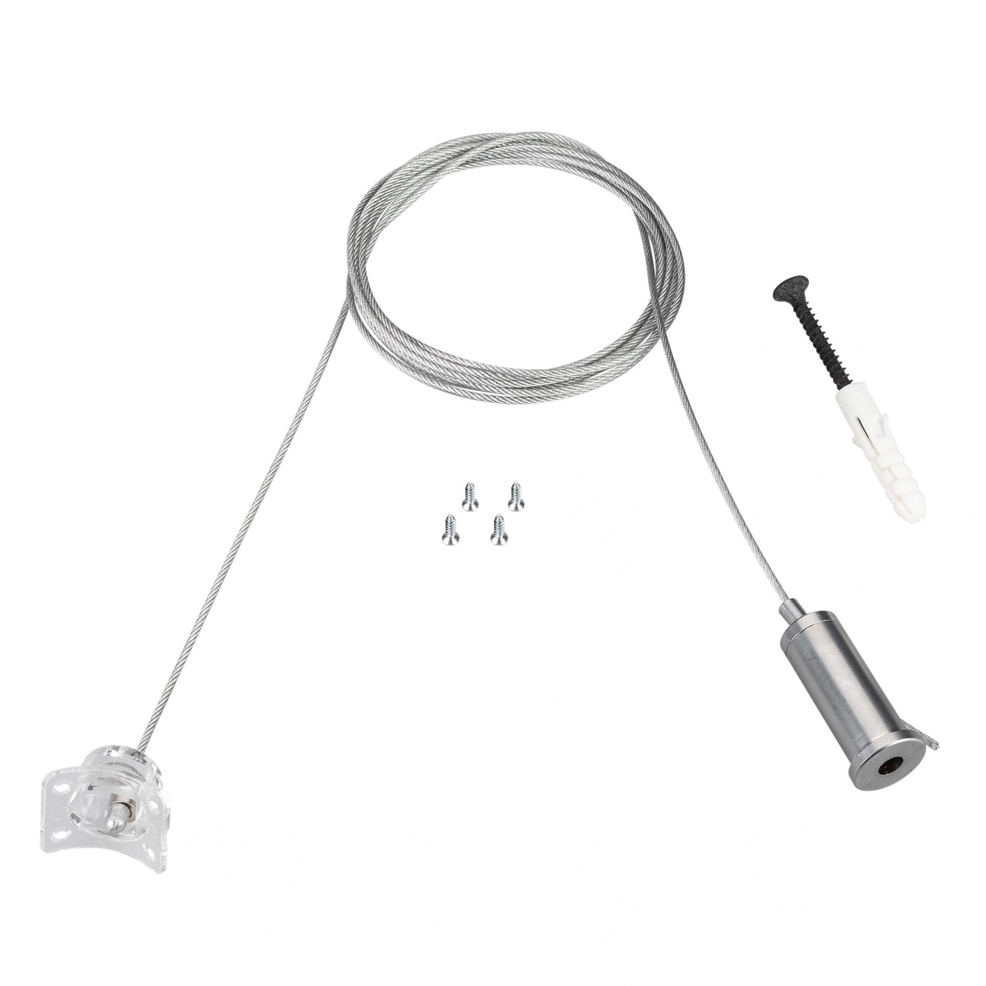 Набор для подвесного монтажа светильников серии FLEX-TUBE с прозрачными монтажными клипсами и винтами. Длина троса 2000 мм.