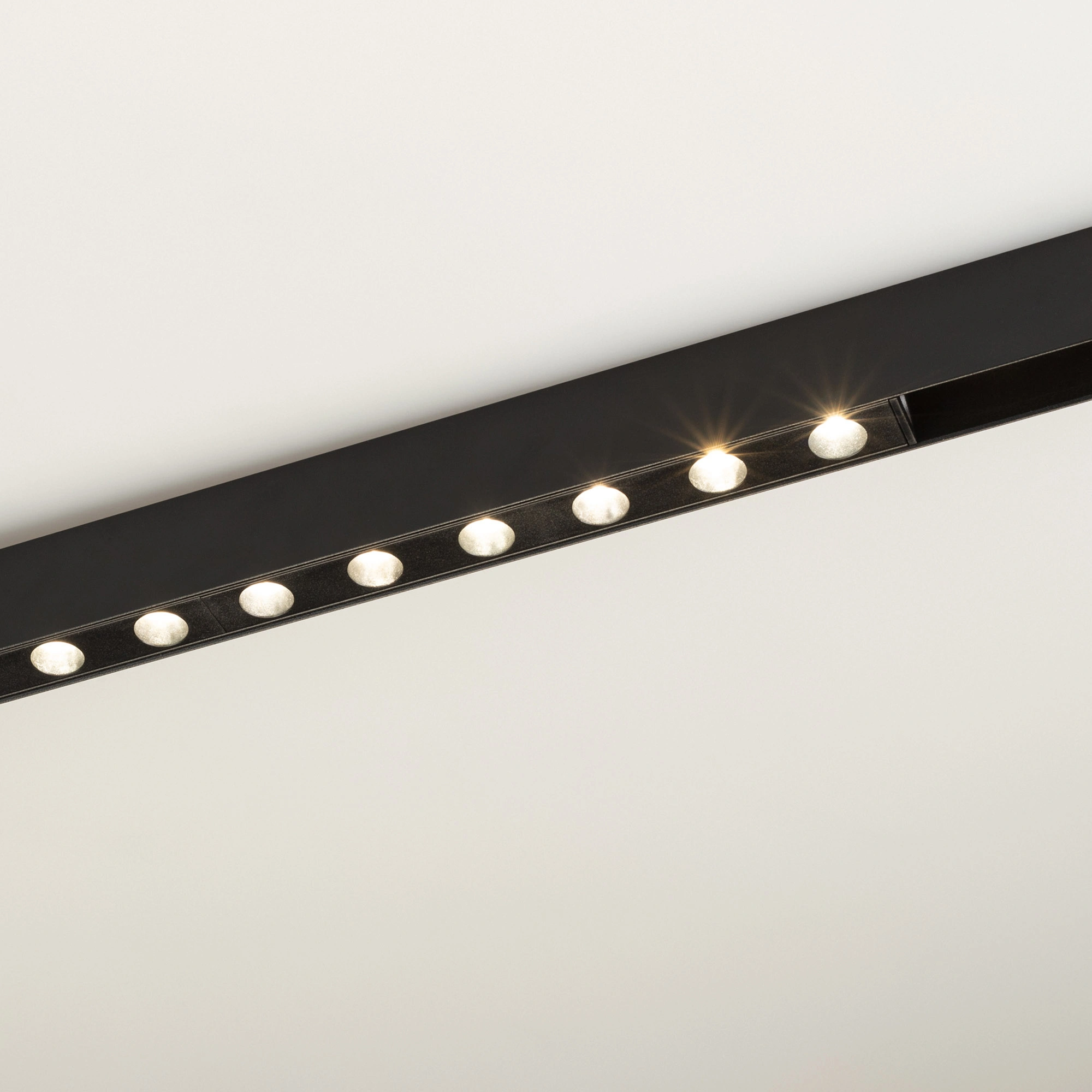 Линейный светодиодный светильникСветильник MAG-DOTS-25-L400-12W Day4000 (BK, 30 deg, 24V, DALI) мощностью 12 Вт для магнитных треков MAG-25 с управлением DALI. Светодиоды снабжены линзами, расположены в индивидуальных ячейках и обеспечивают узкий угол и дневной белый цвет свечения (4000 К), световой поток 800 лм и высокий индекс цветопередачи CRI>90 гарантируют качественное освещение с точной передачей цветовых оттенков. Есть возможность управлять яркостью по протоколу DALI. У светильника безопасное напряжение 24 В и быстрая установка в шинопровод с помощью магнитов. Драйвер для подключения поставляется отдельно.