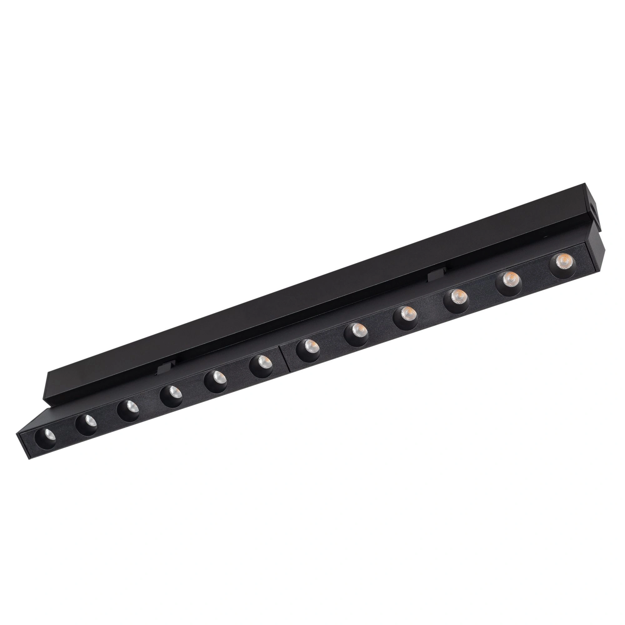 Светильник поворотный для магнитных треков шириной 25мм, 12Вт. Цвет свечения ТЕПЛЫЙ 3000K, световой поток 650 лм, угол 30°, CRI>90. Корпус прямоугольный, металл, цвет черный, IP20. Размеры LxWxH 404x20x46мм. Входное напряжение DC24V, мощность 12Вт. Драйвер DС24V/AC230V поставляется отдельно. Диммируется только с 026407, 027633.