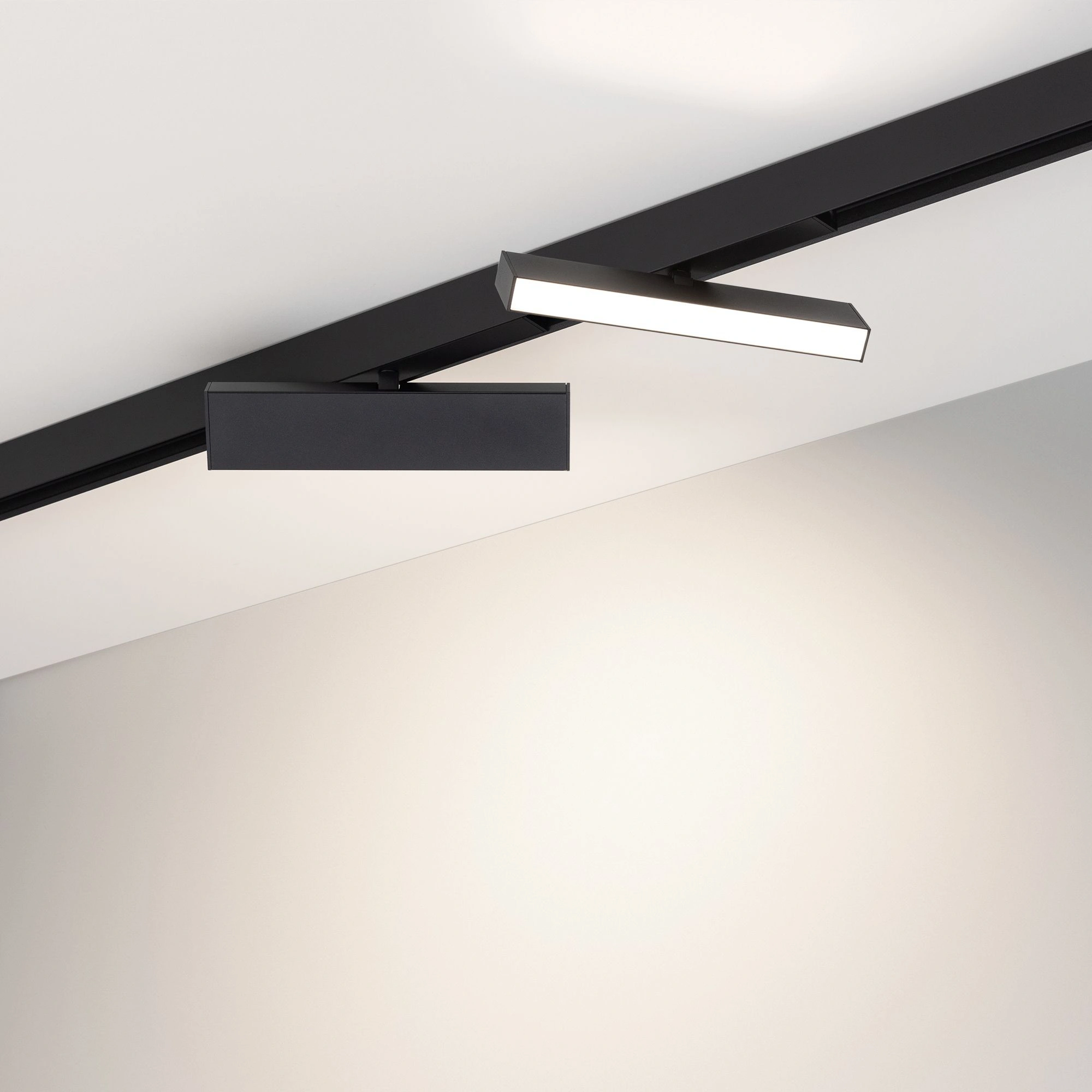 Светильник поворотный для магнитных треков шириной 25мм, 6Вт. Цвет свечения ДНЕВНОЙ 4000K, световой поток 400лм, угол 100°, CRI>90. Корпус прямоугольный, металл, цвет черный, IP20. Размеры LxWxH 204x20x46мм. Входное напряжение DC24V, мощность 6Вт. Драйвер DС24V/AC230V поставляется отдельно. Диммируется только с 026407, 027633.