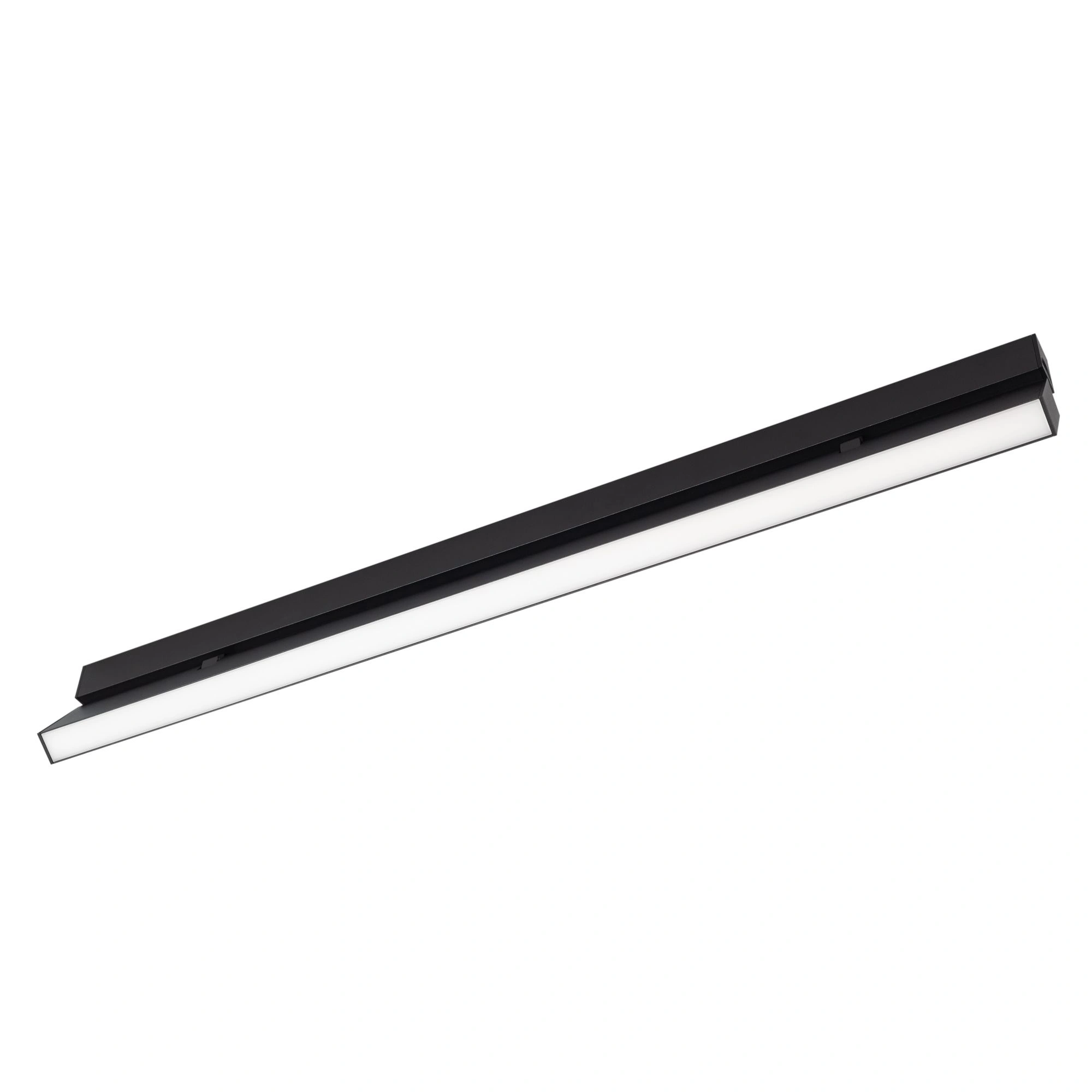 Светильник поворотный для магнитных треков шириной 25мм, 18Вт. Цвет свечения ТЕПЛЫЙ 3000K, световой поток 1100лм, угол 100°, CRI>90. Корпус прямоугольный, металл, цвет черный, IP20. Размеры LxWxH 604x20x46мм. Входное напряжение DC24V, мощность 18Вт. Драйвер DС24V/AC230V поставляется отдельно. Диммируется только с 026407, 027633.