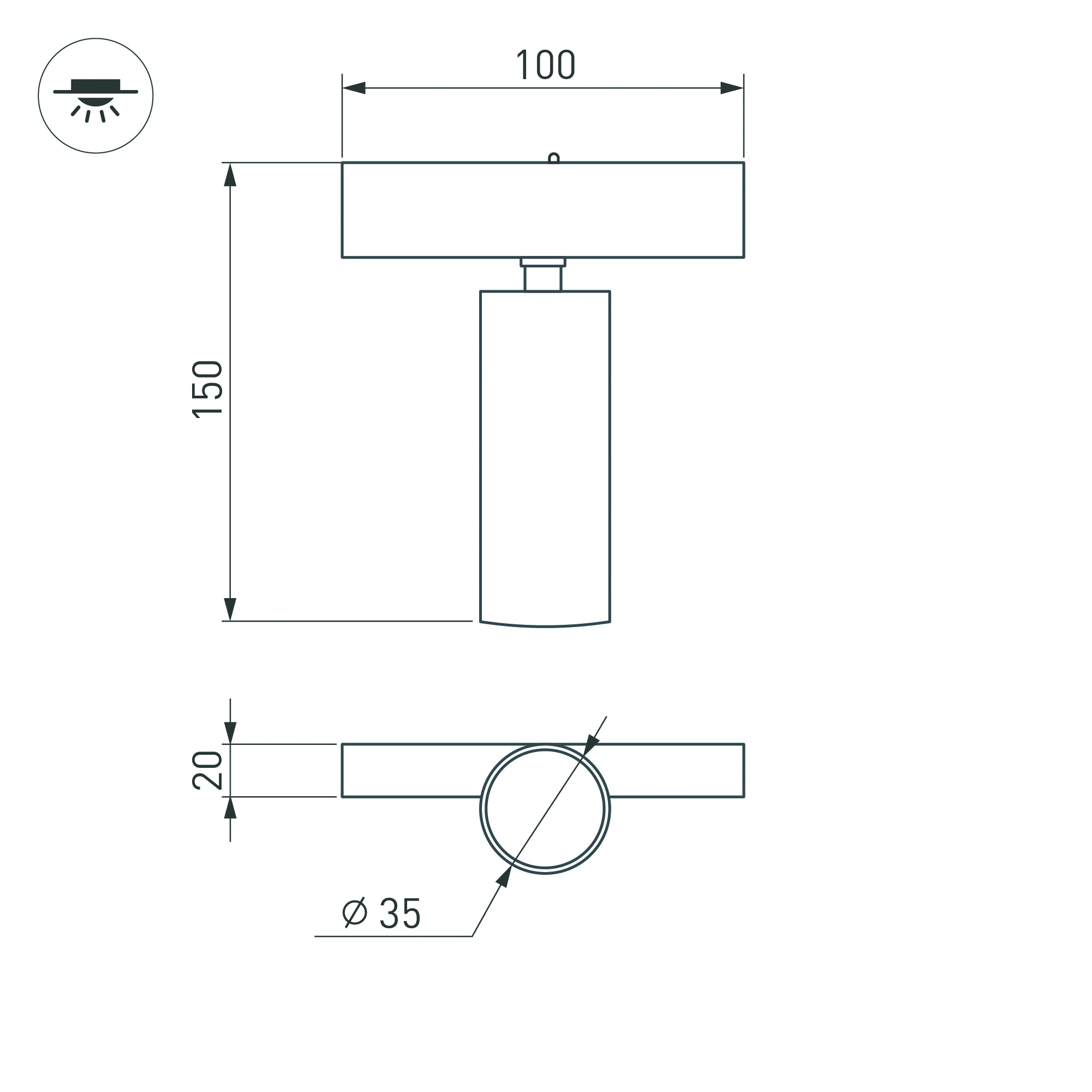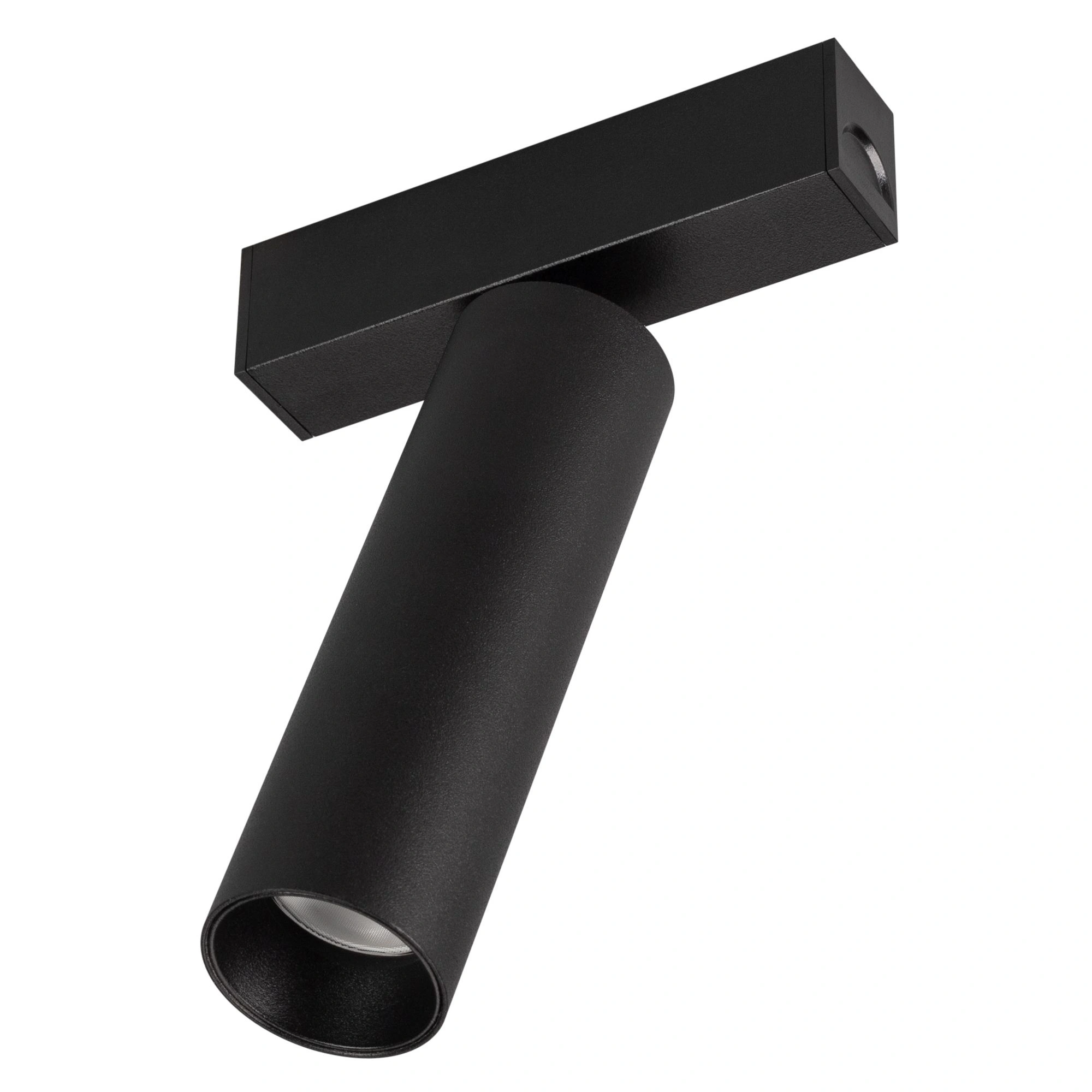 Светильник поворотный для магнитных треков шириной 25 мм, 12 Вт. Цвет свечения ДНЕВНОЙ 4000K, световой поток 840лм, угол 30°, CRI>90. Корпус прямоугольный, металл, цвет черный, IP20. Размеры LxWxH 100x20x150 мм. Входное напряжение DC24V, мощность 12 Вт. Драйвер AС230V/DC230V поставляется отдельно.Диаметр светоизлучающего модуля 35 мм.