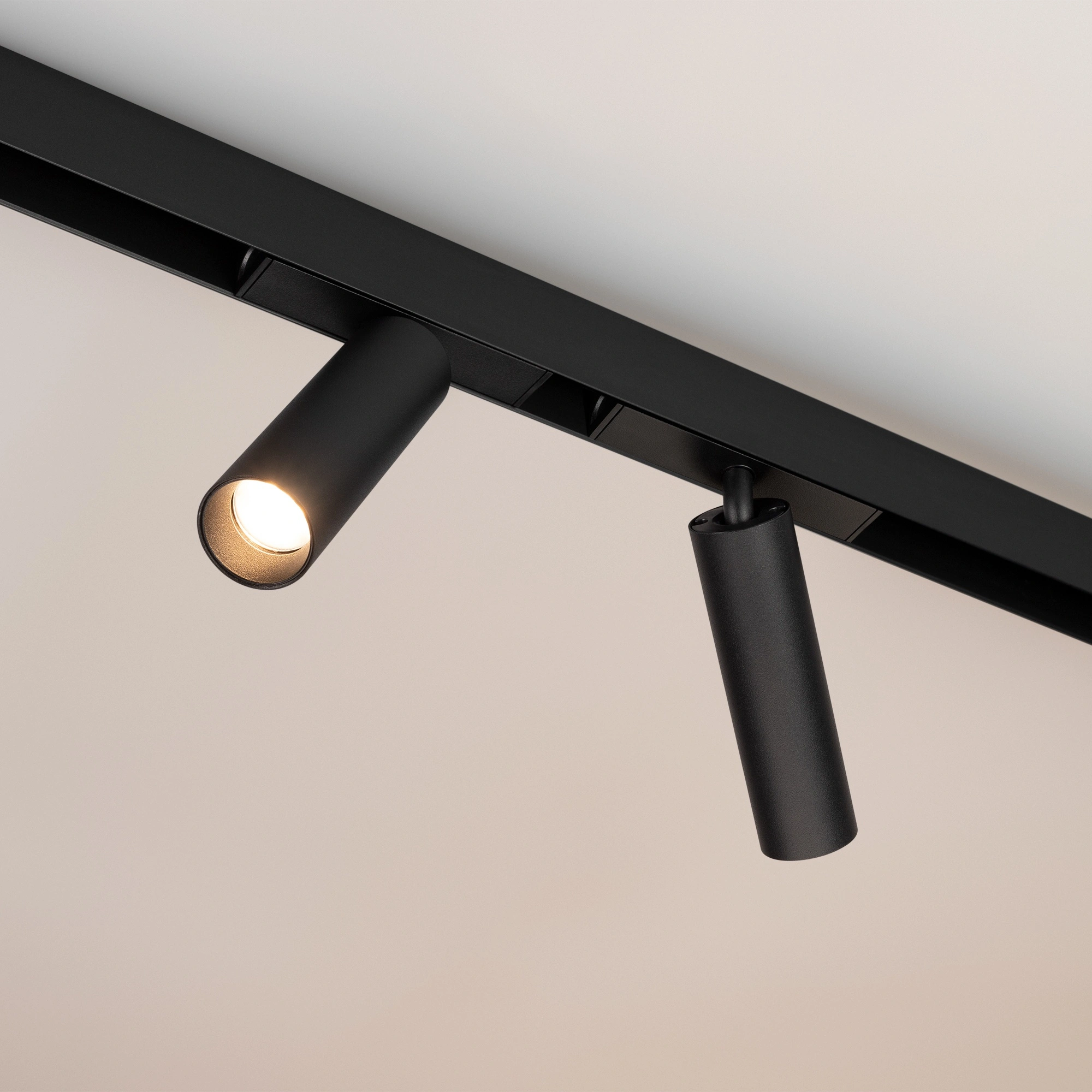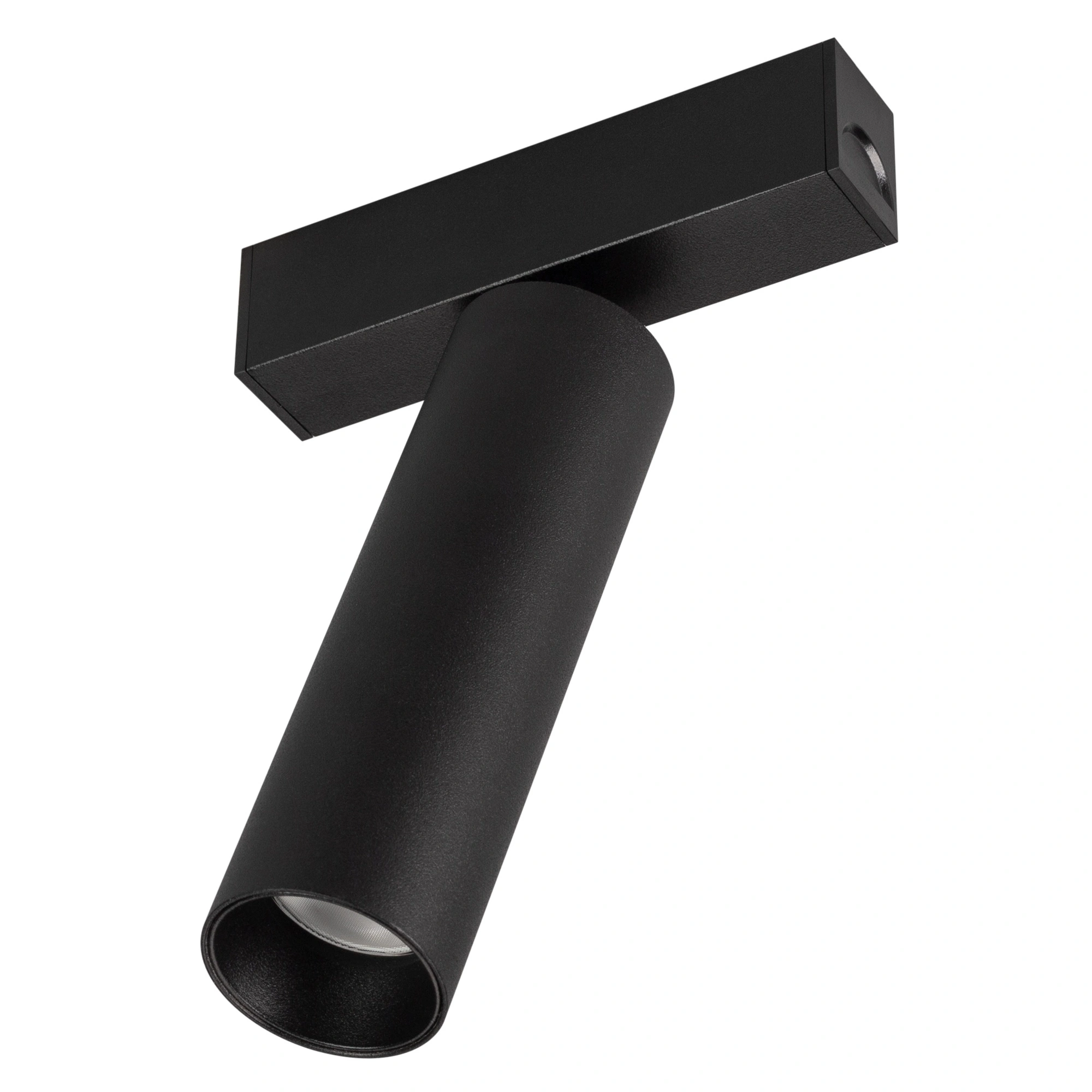 Светильник поворотный для магнитных треков шириной 25 мм, 12 Вт. Цвет свечения ТЕПЛЫЙ 3000K, световой поток 990лм, угол 30°, CRI>90. Корпус прямоугольный, металл, цвет черный, IP20. Размеры LxWxH 100x20x150 мм. Входное напряжение DC24V, мощность 12 Вт. Драйвер AC230V/DC24V поставляется отдельно. Диаметр светоизлучающего модуля 35 мм.