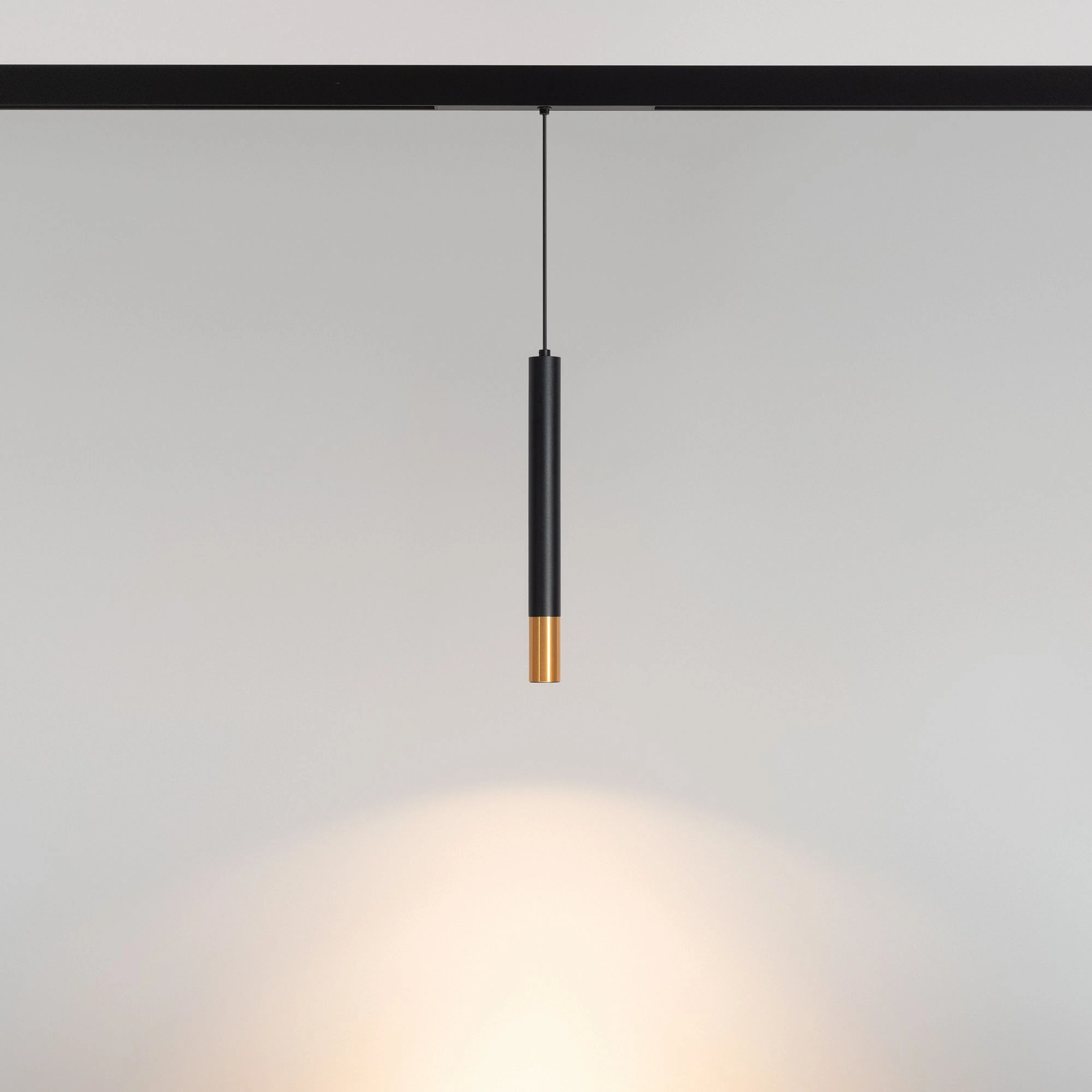 Подвесной светильник MAG-SPOT-HANG-25-R30-5W Warm3000 (BK-GD, 45deg, 24V) мощностью 5 Вт для магнитных треков MAG-25. Теплый белый цвет свечения (3000 К) и высокий индекс цветопередачи CRI>90 обеспечивают качественное освещение с точной передачей цветовых оттенков. Световой поток 300 лм и узкий угол излучения 45° идеально подходят для организации акцентной подсветки в разных типах помещений. Световой модуль светильника с золотистой вставкой на регулируемом подвесе длиной 1400 мм устанавливается в шинопровод с помощью магнитов. Есть возможность диммирования. У светильника безопасное напряжение 24 В и быстрый, удобный монтаж. Драйвер для подключения поставляется отдельно. Идеально подходит для освещения жилых, офисных, торговых и других помещений.