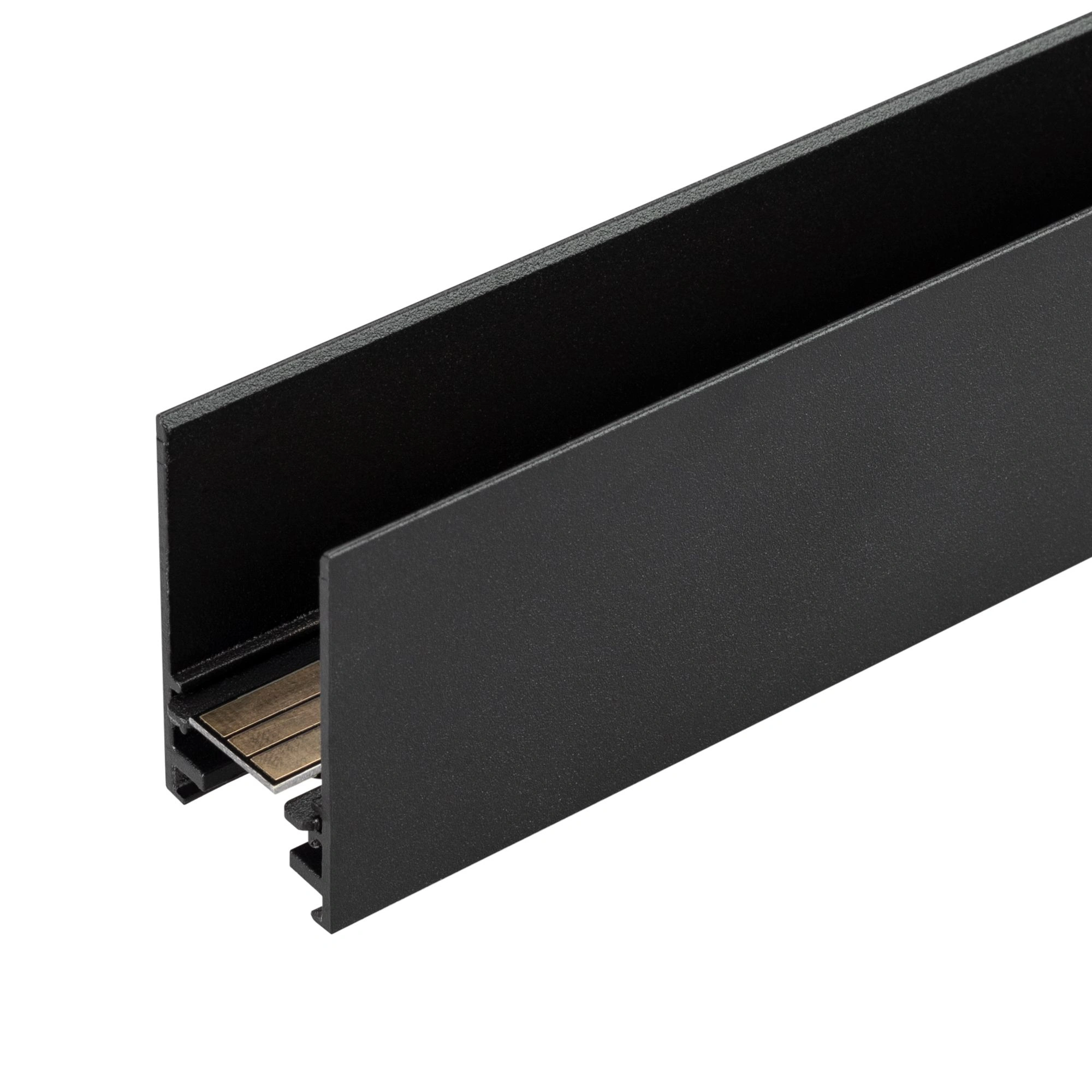 Подвесной, накладной магнитный трек, длина 1000 мм. DC24V. Материал алюминий, цвет черный. Две заглушки в комплекте. Размер ДxШxВ: 1003x23x38 мм. Размер (с учетом заглушек). Аксессуары для подвесного монтажа в комплект не входят.