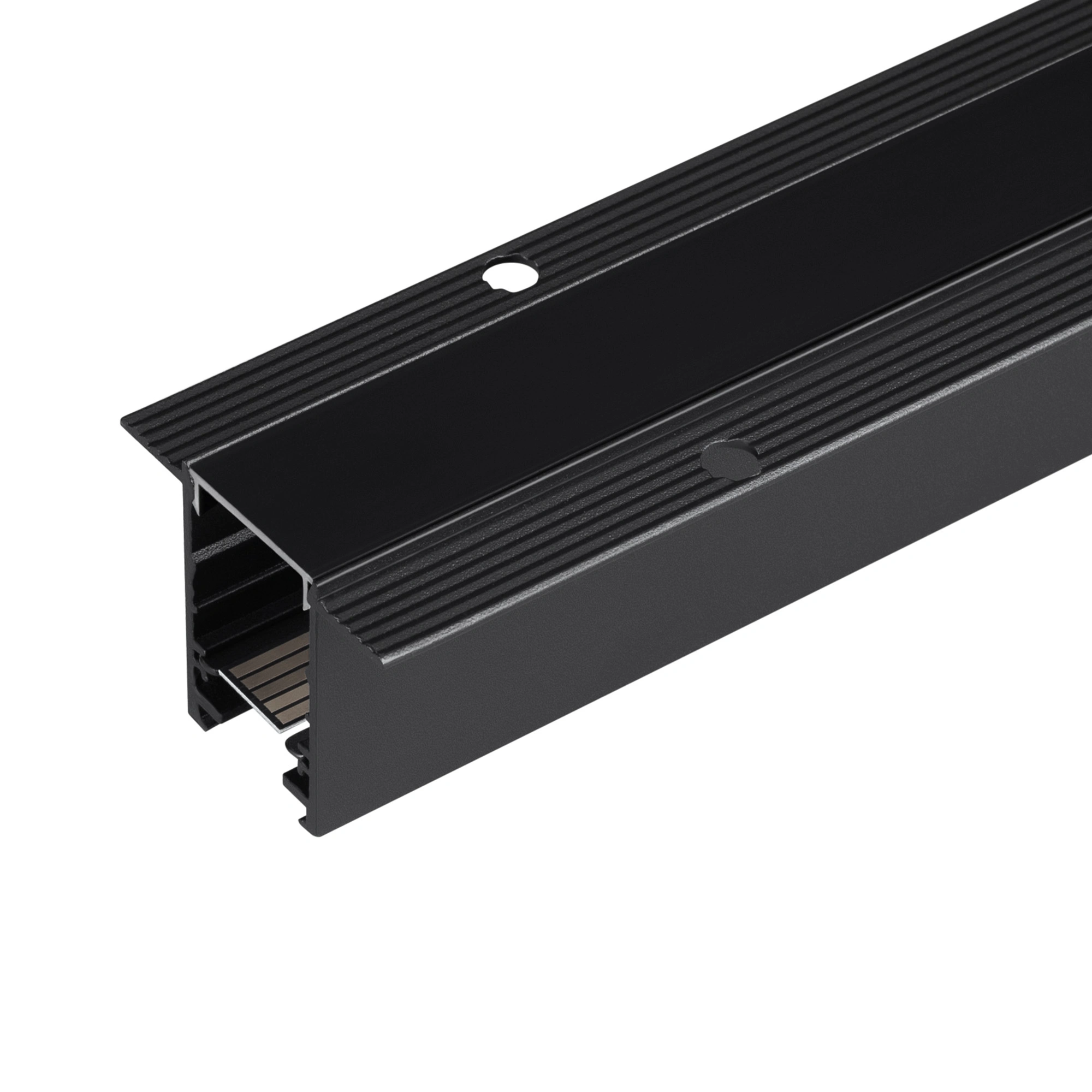 Встраиваемый магнитный трек с фланцем, длина 3000 мм. DC24V, позволяет диммировать светильники по протоколу DALI. Материал алюминий, цвет черный. Две заглушки в комплекте. Размер ДxШxВ: 3003x49x38 мм. Размер (с учетом заглушек и фланцев).