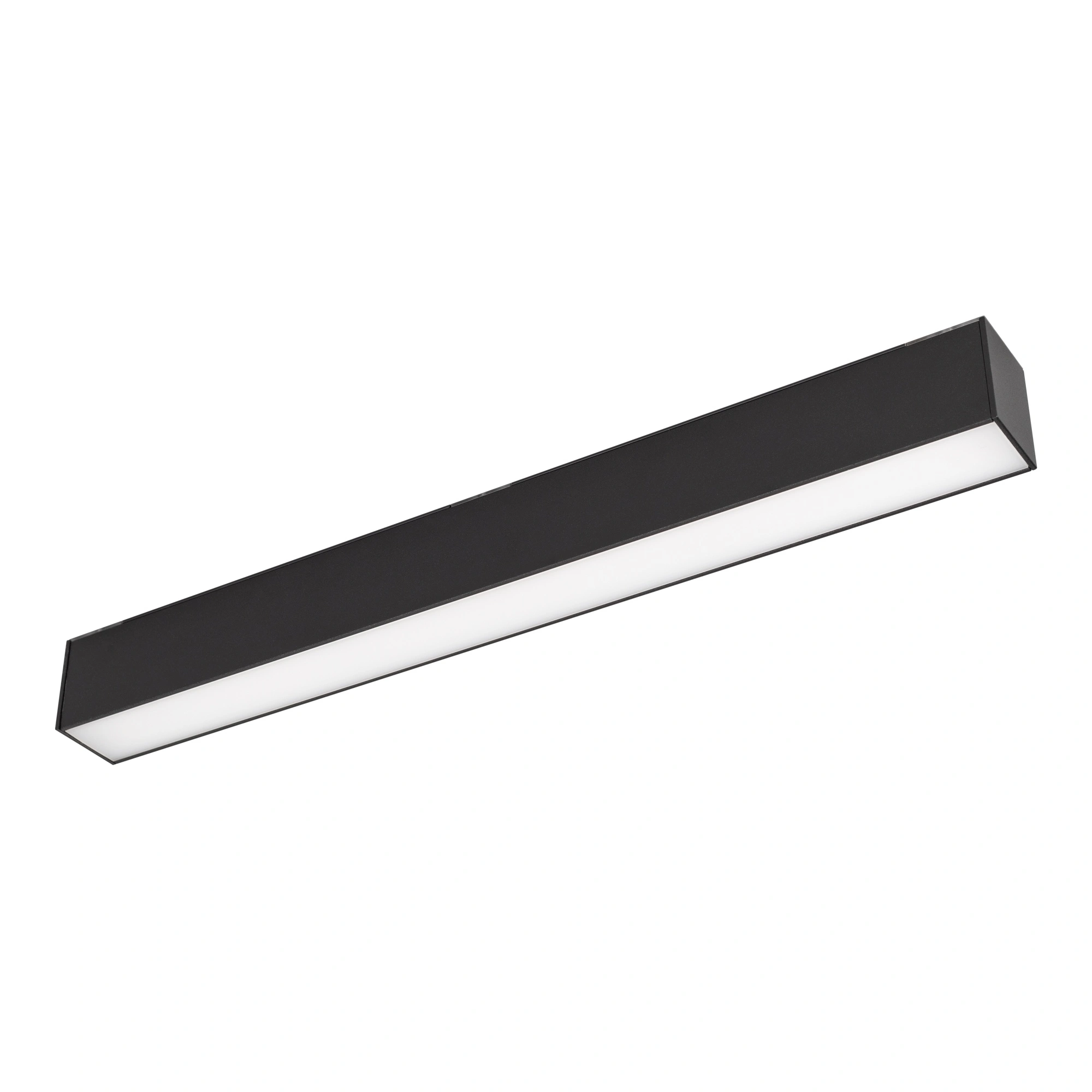 Светильник для магнитных треков шириной 45мм, 12Вт с управлением DALI. Цвет свечения ДНЕВНОЙ 4000K, световой поток 1300лм, угол 100°, CRI>90. Корпус прямоугольный, металл, цвет черный, IP20. Размеры LxWxH 404x35x43мм. Входное напряжение DC24V, мощность 12Вт. Драйвер поставляется отдельно.