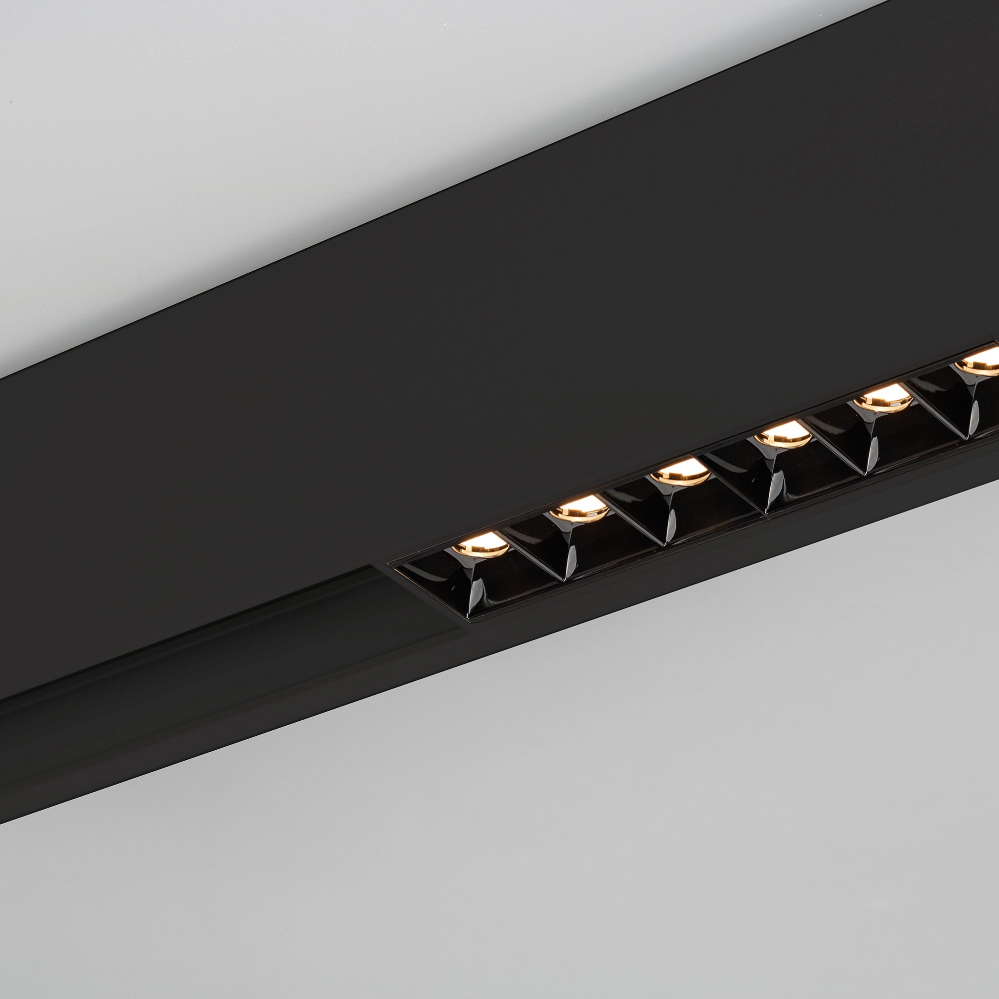 Линейный светодиодный светильник MAG-LASER-45-L320-12W Day4000 (BK, 15 deg, 24V, DALI) мощностью 12 Вт для магнитных треков MAG-45 с управлением DALI. Светодиоды снабжены линзами, расположены в индивидуальных ячейках и обеспечивают узкий угол излучения 15°, подходящий для организации акцентного освещения. Дневной белый цвет свечения (4000 К), световой поток 890 лм и высокий индекс цветопередачи CRI>90 гарантируют качественное освещение с точной передачей цветовых оттенков. Есть возможность управлять яркостью по протоколу DALI. У светильника безопасное напряжение 24 В и быстрая установка в шинопровод с помощью магнитов. Драйвер для подключения поставляется отдельно.