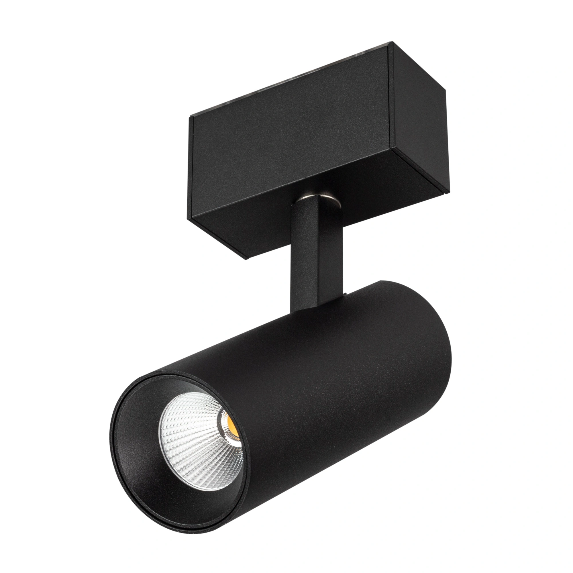 Светильник поворотный для магнитных треков шириной 45мм, 12Вт с управлением DALI. Цвет свечения ДНЕВНОЙ 4000K, световой поток 1000 лм, угол 36°, CRI>90. Корпус прямоугольный, металл, цвет черный, IP20. Размеры LxWxH 84x35x178мм. Входное напряжение DC24V, мощность 12Вт. Драйвер поставляется отдельно.