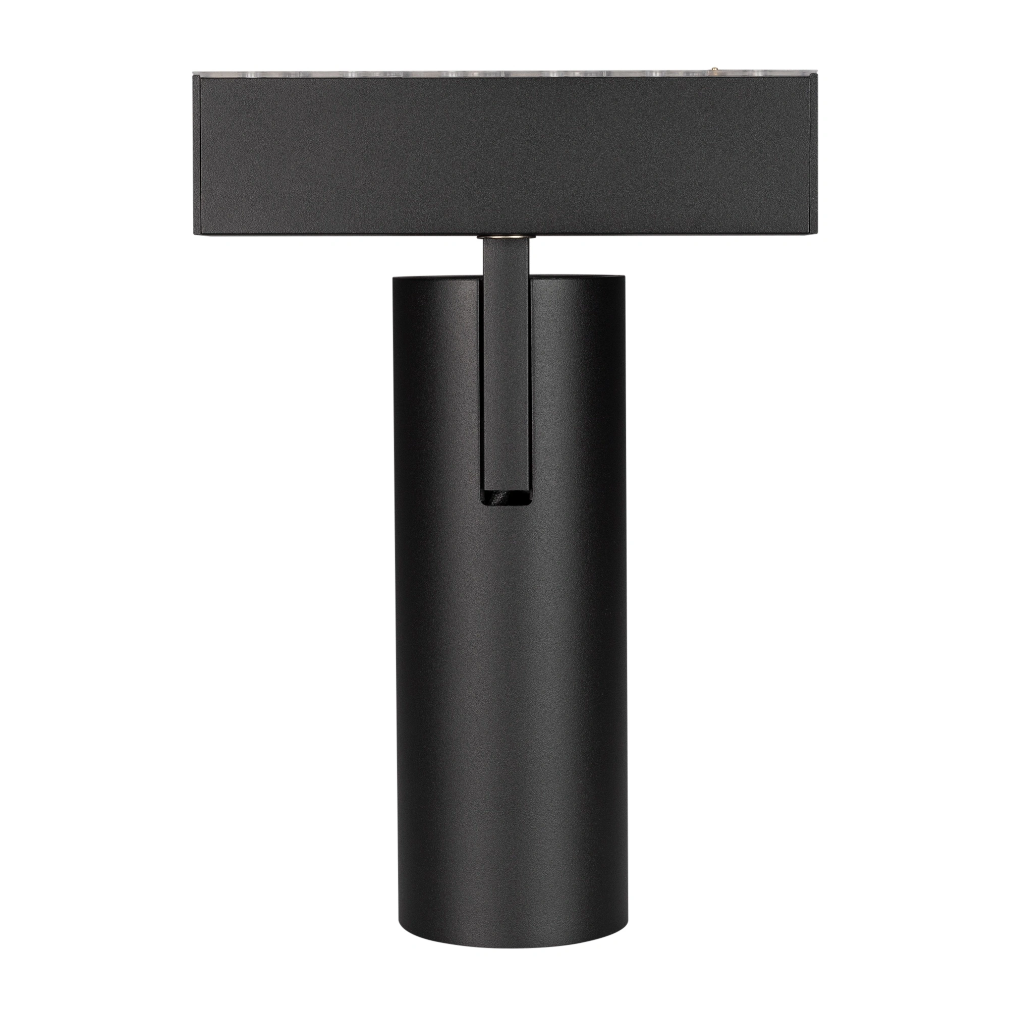 Светильник поворотный для магнитных треков шириной 45мм, 18Вт c управлением DALI. Цвет свечения ТЕПЛЫЙ 3000K, световой поток 1100лм, угол 36°, CRI>90. Корпус прямоугольный, металл, цвет черный, IP20. Размеры LxWxH 163×35×225мм. Входное напряжение DC24V, мощность 18Вт. Драйвер поставляется отдельно.