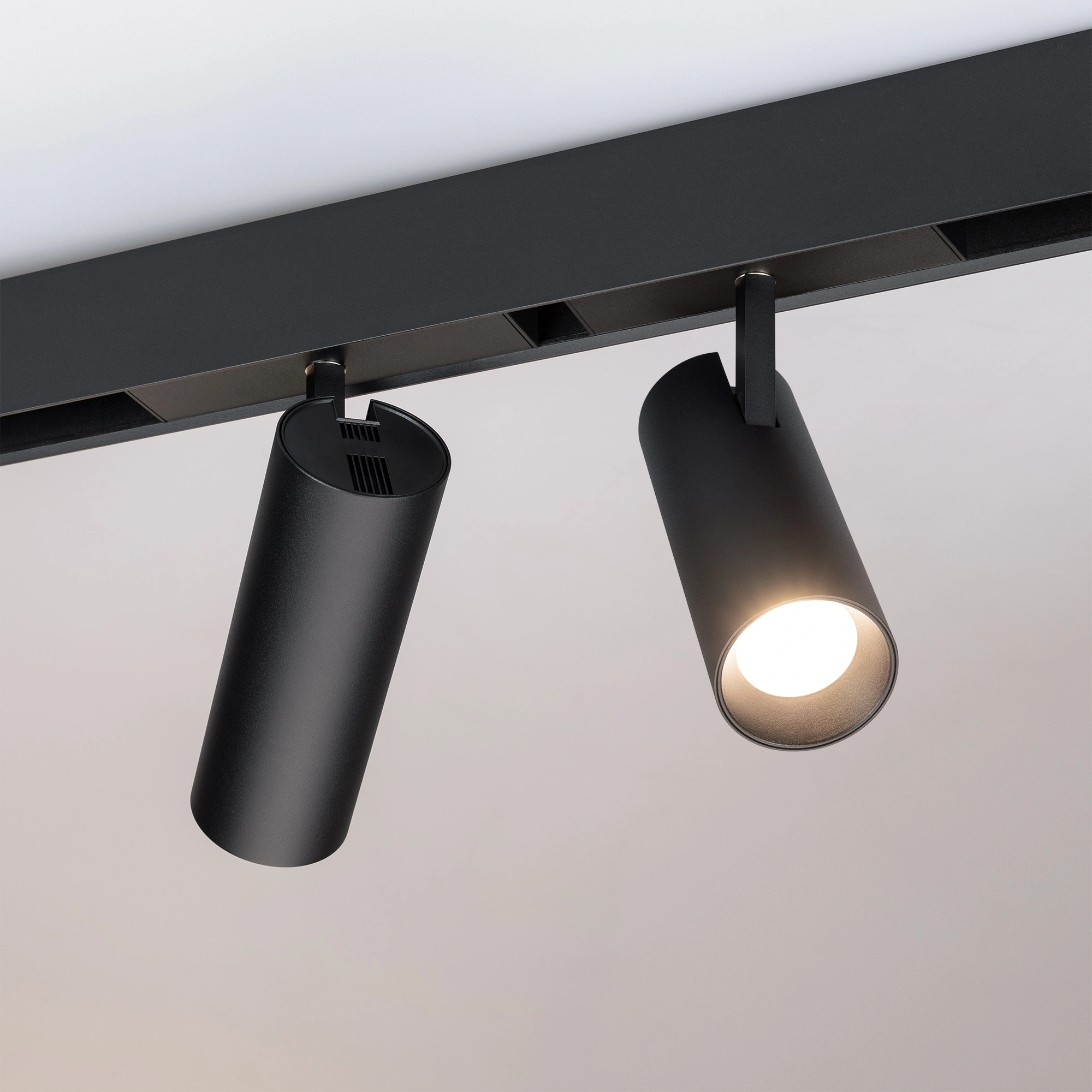Поворотный светодиодный светильник MAG-SPOT-45-R65-18W Warm3000 (BK, 36 deg, 24V, DALI) мощностью 18 Вт для магнитных треков MAG-45 c управлением DALI. Узкий угол излучения 36° для создания акцентного освещения. Теплый белый цвет свечения (3000 К), световой поток 1100 лм и высокий индекс цветопередачи CRI>90 обеспечивают качественное освещение с точной передачей цветовых оттенков. Световой модуль светильника поворачивается на 350° и отклоняется относительно горизонтали на 90°, что позволяет за секунды менять световые акценты. Есть возможность управлять яркостью по протоколу DALI. У светильника безопасное напряжение 24 В и быстрая установка в шинопровод с помощью магнитов. Драйвер для подключения поставляется отдельно.