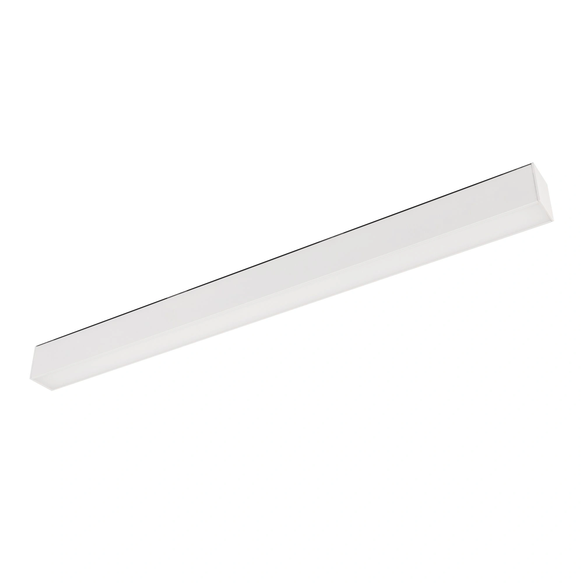 Светильник для магнитных треков шириной 45мм, 18Вт. Цвет свечения ДНЕВНОЙ 4000K, световой поток 1900лм, угол 100°, CRI>90. Корпус прямоугольный, металл, цвет белый, IP20. Размеры LxWxH 604x35x43мм. Входное напряжение DC24V, мощность 18Вт. Драйвер DС24V/AC230V поставляется отдельно. Диммируется только с 026407(1), 027633.