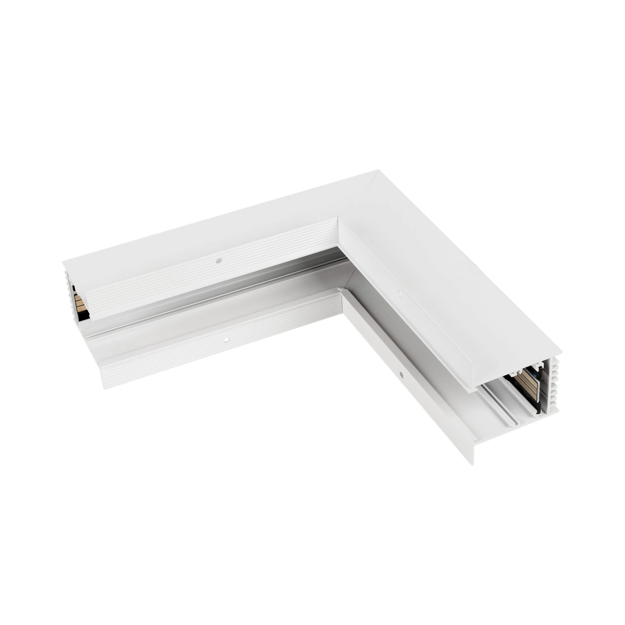 Угловой внутренний коннектор MAG-CON-4560-F-L90-INT для встраиваемого трека MAG-TRACK-4560-F. Напряжение питания 24 В. Аксессуары для соединения с треком приобретаются отдельно.