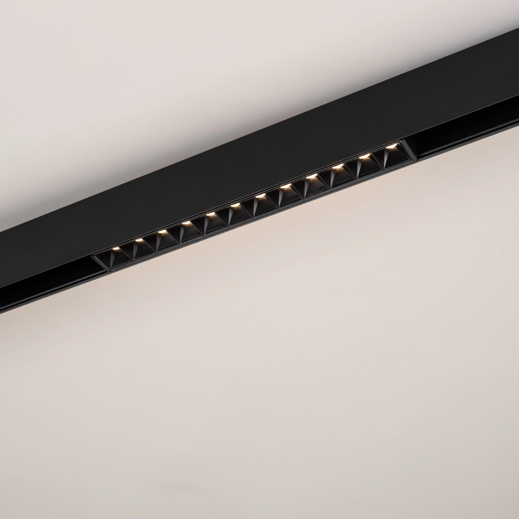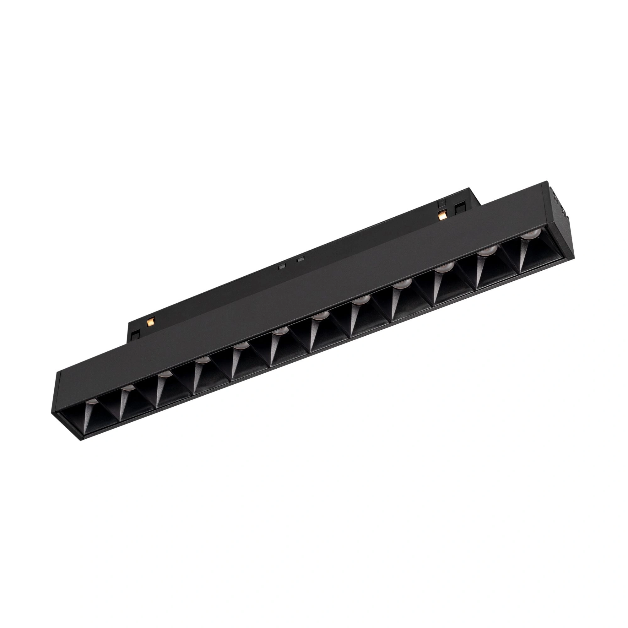 Cветильник MAG-ORIENT-LASER-L235-8W Day4000 (BK, 24 deg, 48V, DALI) мощностью 8 Вт для магнитных треков серии MAG-ORIENT шириной 26 мм с управлением по DALI. Дневной цвет свечения (4000 К), световой поток 460 лм, световая эффективность 58 лм/Вт и высокий индекс цветопередачи CRI>90 обеспечивают качественное, равномерное освещение и отличную цветопередачу, что удовлетворяет требованиям светотехнических проектов. Линейный корпус из алюминия окрашен в черный цвет высококачественной порошковой краской и гармонично вписывается в различные типы интерьеров. Светильник быстро и надежно крепится на трек с помощью магнитов и механических фиксаторов. Узкий угол излучения 24° подойдет для организации направленного освещения. Имеет защиту от пыли IP20 для применения внутри помещений, где нет контакта с водой или другими жидкостями. Минимальный коэффициент пульсации (менее 1%) гарантирует зрительный комфорт без мерцания. Расширенная гарантия до 5 лет указывает на надежность и длительную работоспособность. Идеальное решение для создания локального, прямого освещения отдельных зон, объектов в жилых, торговых, коммерческих, и др. помещениях с высокими требованиями к качеству света. Драйвер для подключения 48В поставляется отдельно.