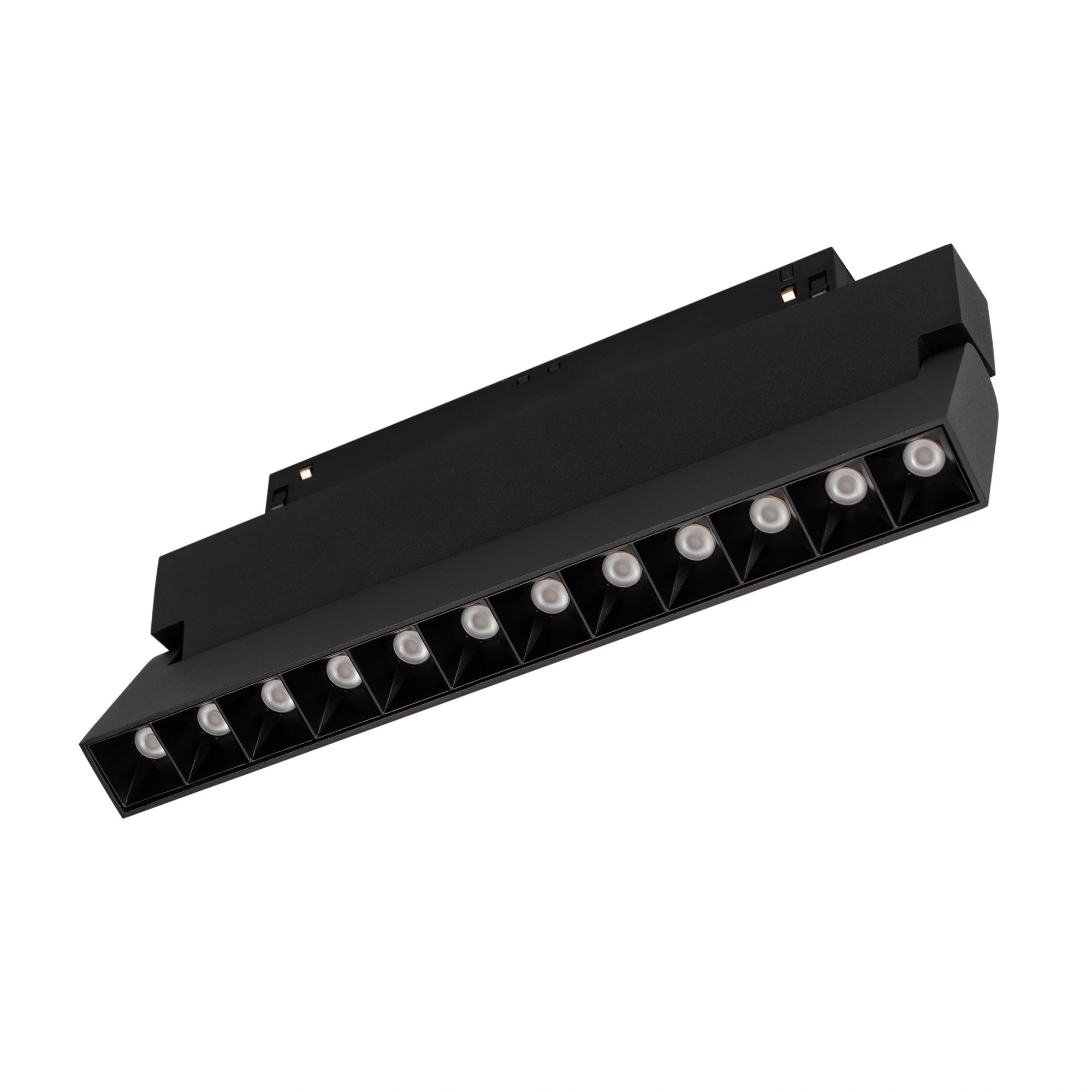 Поворотный светильник MAG-ORIENT-LASER-FOLD-S230-12W Warm3000 (BK, 30 deg, 48V, DALI) мощностью 12 Вт для магнитных треков серии MAG-ORIENT шириной 26 мм с управлением по DALI. Теплый цвет свечения (3000 К), световой поток 520 лм, световая эффективность 43 лм/Вт и высокий индекс цветопередачи CRI>90 обеспечивают качественное, равномерное освещение и отличную цветопередачу, что удовлетворяет требованиям светотехнических проектов. Прямоугольный корпус из алюминия окрашен в черный цвет высококачественной порошковой краской и гармонично вписывается в различные типы интерьеров. Светильник быстро и надежно крепится на трек с помощью магнитов и механических фиксаторов. Корпус светильника отклоняется на 90° по вертикали относительно потолка, что позволяет менять направление светового луча. Узкий угол излучения 30° подойдет для организации направленного освещения. Имеет защиту от пыли IP20 для применения внутри помещений, где нет контакта с водой или другими жидкостями. Минимальный коэффициент пульсации (менее 1%) гарантирует зрительный комфорт без мерцания. Расширенная гарантия до 5 лет указывает на надежность и длительную работоспособность. Идеальное решение для создания акцентного освещения в жилых, торговых, коммерческих, и др. помещениях с высокими требованиями к качеству света. Драйвер для подключения 48В поставляется отдельно.