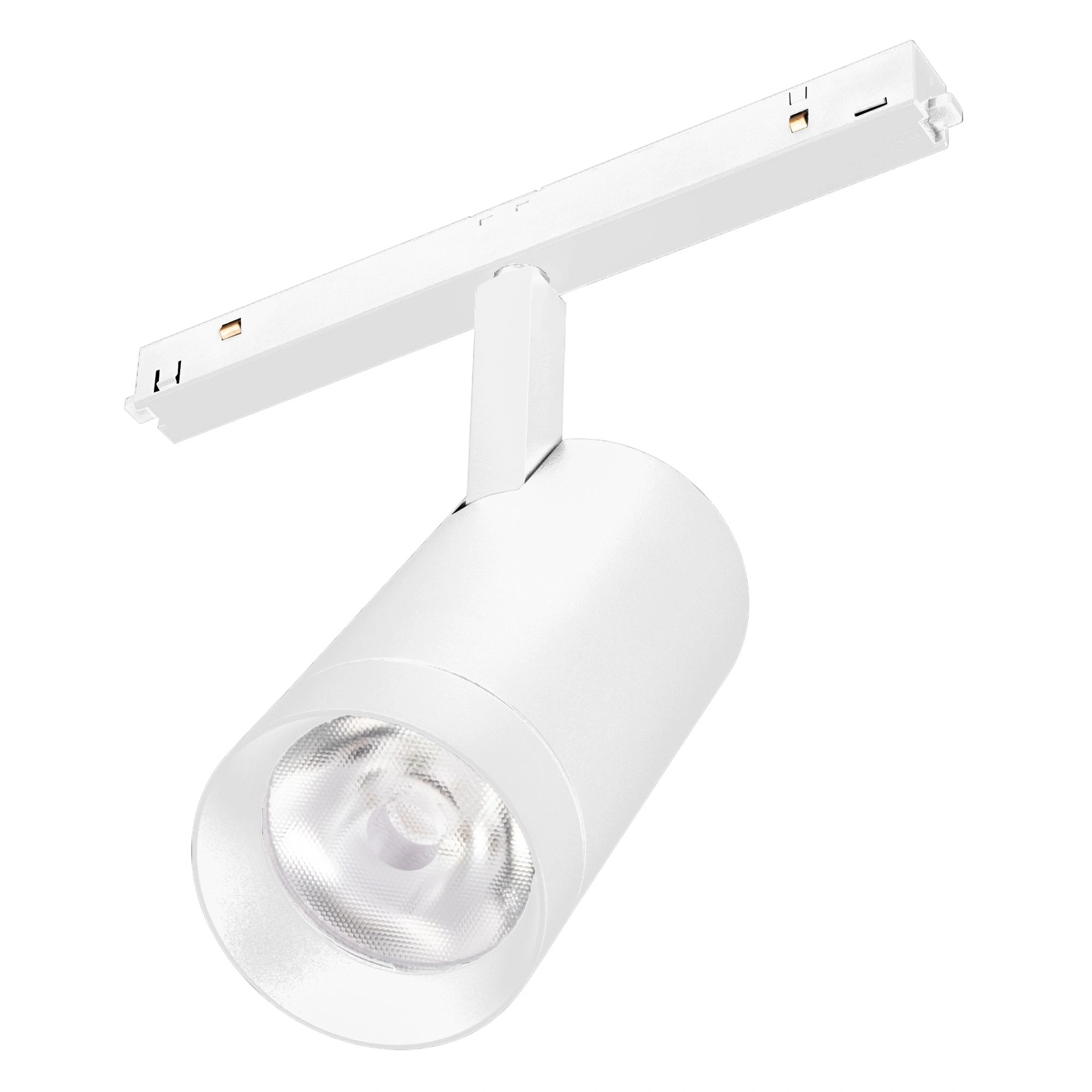 Светильник MAG-ORIENT-SPOT-R65-20W Day4000 (WH, 24 deg, 48V) мощностью 20 Вт для магнитных треков серии MAG-ORIENT шириной 26 мм. Дневной цвет свечения (4000 К), световой поток 2010 лм, световая эффективность 100 лм/Вт и высокий индекс цветопередачи CRI>90 обеспечивают качественное, равномерное освещение и отличную цветопередачу, что удовлетворяет требованиям светотехнических проектов. Компактный фигурный корпус из алюминия окрашен в белый цвет высококачественной порошковой краской и гармонично вписывается в различные типы интерьеров. Светильник быстро и надежно крепится на трек с помощью магнитов и механических фиксаторов. Световой модуль поворачивается вокруг своей оси на 350° отклоняется на 90° по вертикали относительно потолка, что позволяет быстро регулировать направление светового луча. Узкий угол излучения 24° подойдет для организации направленного освещения. Имеет защиту от пыли IP20 для применения внутри помещений, где нет контакта с водой или другими жидкостями. Минимальный коэффициент пульсации (менее 1%) гарантирует зрительный комфорт без мерцания. Расширенная гарантия до 5 лет указывает на надежность и длительную работоспособность. Идеальное решение для создания акцентного освещения в жилых, торговых, коммерческих, и др. помещениях с высокими требованиями к качеству света. Драйвер для подключения 48В поставляется отдельно.