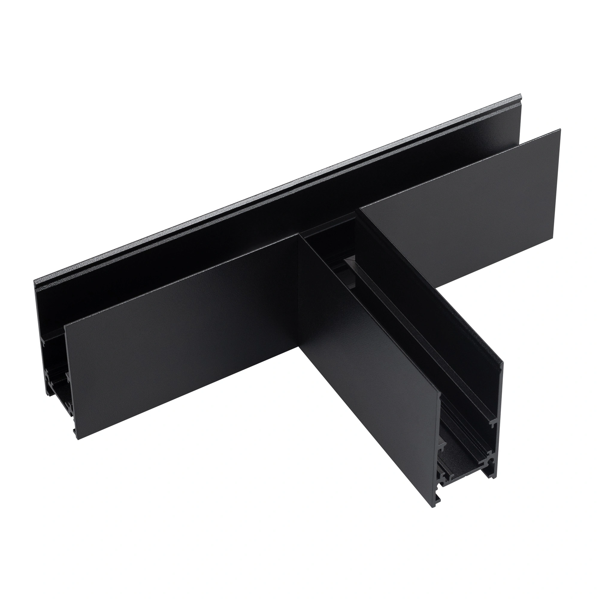 Тройной прямой коннектор для накладного трека ORIENT-2652 без токоведущих плат. Материал алюминий, цвет черный. Размеры 200x113x54мм. DC48V. Аксессуары для соединения с треком приобретаются отдельно.