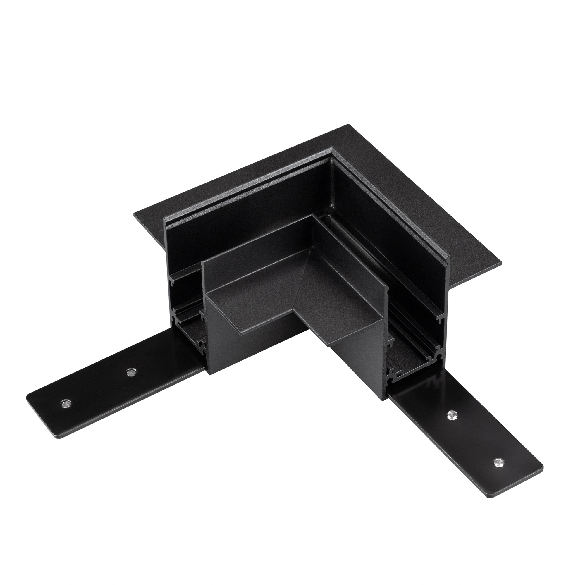 Угловой коннектор для встраиваемого трека MAG-ORIENT. Материал алюминий, цвет черный. Размеры 90x90x70x53мм. Аксессуары для электрического соединения с треком приобретаются отдельно. В комплекте идут механические соединители.