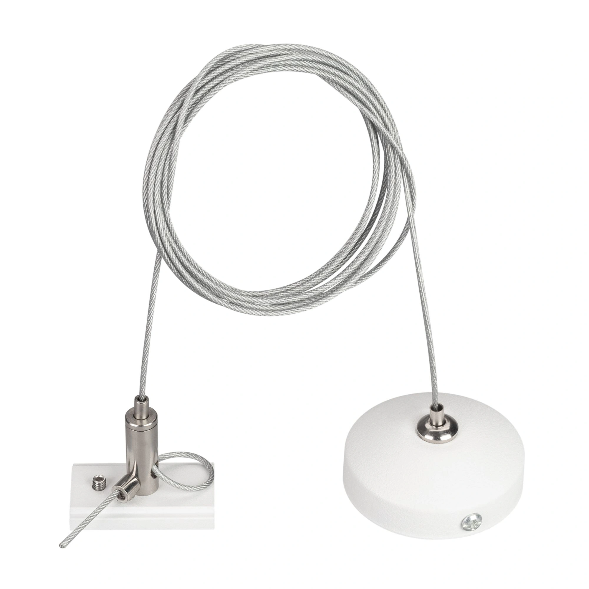 Тросовый подвес для подвесного монтажа магнитных треков MAG-ORIENT с фурнитурой белого цвета. Длина троса 2 м. Выдерживает вес максимум 15 кг. В комплекте тросовый держатель, трос, фиксатор для троса.
