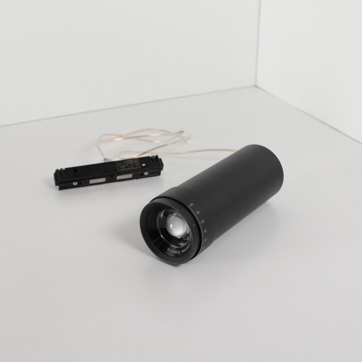 Светодиодный светильник трековый, магнитный 20мм. Подвесной. Черный корпус из алюминиевого сплава. Напряжение 48V, мощность 7W, цвет свечения теплый белый 3000-3200K, коэффициент цветопередачи CRI>90, световой поток 525Lm. Угол свечения 10-60 градусов. Класс защиты IP20. Размеры светильника:диаметр цилиндра 57мм, высота 153мм. Длина провода до 950мм. Размеры упаковки 160х80х80мм. Вес 420г. Гарантия 3 года. Магнитные трековые системы- это дальнейшее развитие трековых систем. Более надежная установка светильника в любом месте трека. Высокий коэффициент цветопередачи в каждом светильнике. Стильные, утонченные корпуса используют для освещения жилых, офисных, торговых помещений.