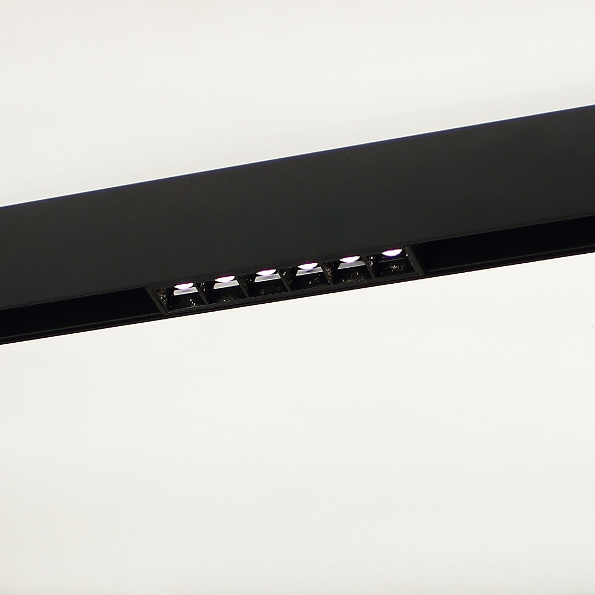 Светодиодный светильник трековый, магнитный 20мм. Черный корпус из алюминиевого сплава. Напряжение 48V, мощность 6W, цвет свечения дневной белый 4000-4200K, коэффициент цветопередачи CRI>90, световой поток 450Lm. Угол свечения 24 градусов. Класс защиты IP20. Размеры светильника 112x22x42мм. Размеры упаковки 150х85х40мм. Вес 150г. Гарантия 3 года. Магнитные трековые системы- это дальнейшее развитие трековых систем. Более надежная установка светильника в любом месте трека. Высокий коэффициент цветопередачи в каждом светильнике. Стильные, утонченные корпуса используют для освещения жилых, офисных, торговых помещений.