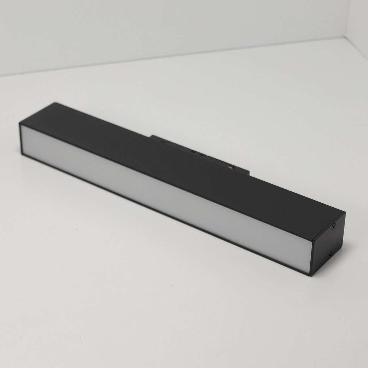 Светодиодный светильник трековый, магнитный 35мм. Черный корпус из алюминиевого сплава. Напряжение 48V, мощность 12W, цвет свечения дневной белый 4000-4200K, коэффициент цветопередачи CRI>90, световой поток 900Lm. Угол свечения 120 градусов. Класс защиты IP20. Размеры светильника 303x34x70мм. Размеры упаковки 350х100х50мм. Вес 450г. Гарантия 3 года. Магнитные трековые системы- это дальнейшее развитие трековых систем. Более надежная установка светильника в любом месте трека. Высокий коэффициент цветопередачи в каждом светильнике. Стильные, утонченные корпуса используют для освещения жилых, офисных, торговых помещений