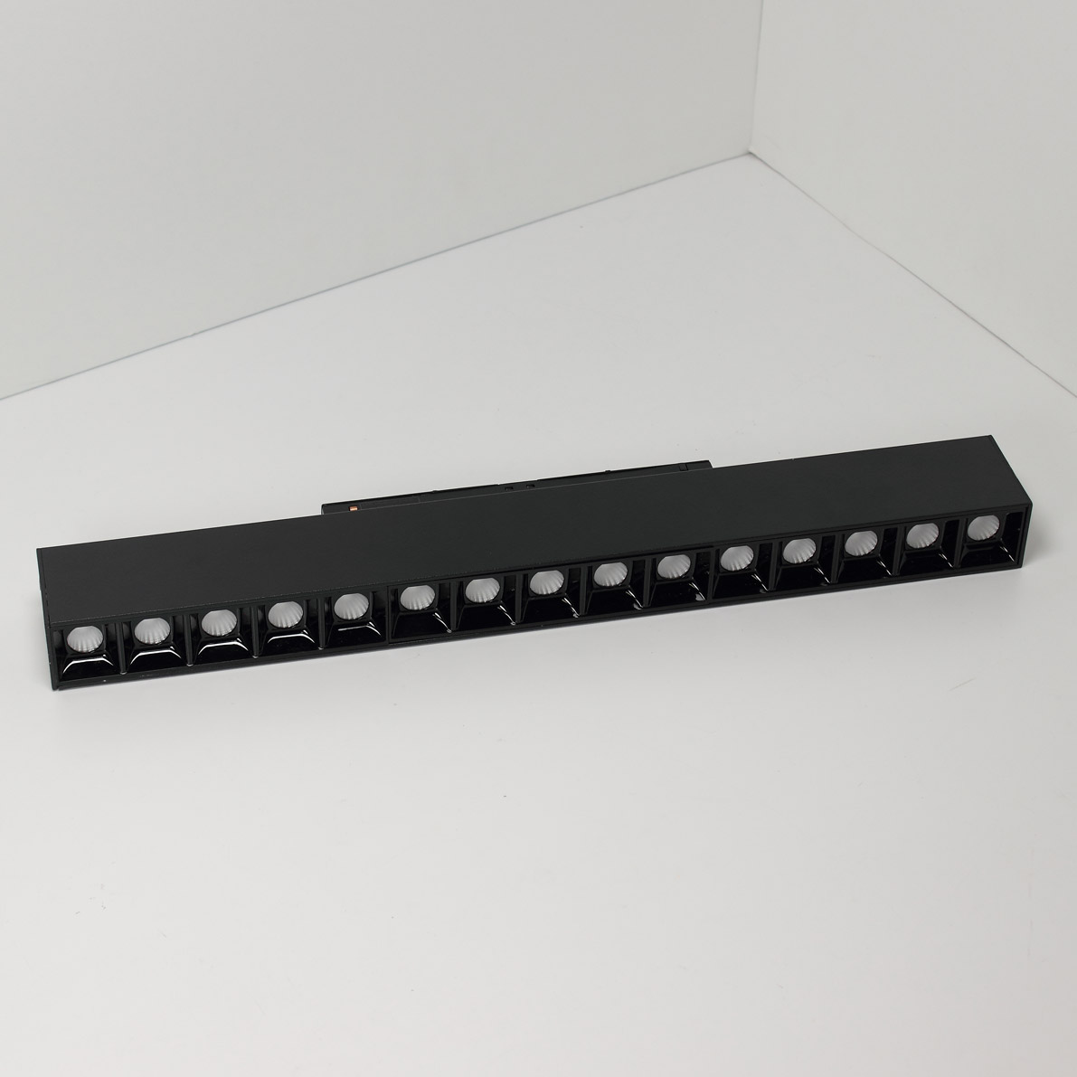 Светодиодный светильник трековый, магнитный 35мм. Черный корпус из алюминиевого сплава. Напряжение 48V, мощность 30W, цвет свечения теплый белый 3000-3200K, коэффициент цветопередачи CRI>90, световой поток 2250Lm. Угол свечения 24 градусов. Класс защиты IP20. Размеры светильника 400x34x68мм. Размеры упаковки 650х50х105мм. Вес 680г. Гарантия 3 года. Магнитные трековые системы- это дальнейшее развитие трековых систем. Более надежная установка светильника в любом месте трека. Высокий коэффициент цветопередачи в каждом светильнике. Стильные, утонченные корпуса используют для освещения жилых, офисных, торговых помещений
