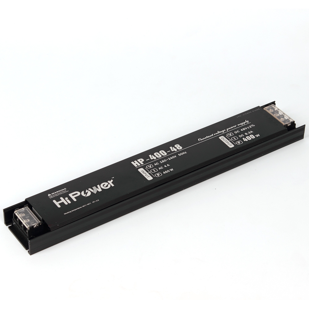 Источник стабилизированного напряжения 48V 400W 8,3A. В металическом корпусе. Степень защиты IP20. Входное напряжение 180-240V, выходное напряжение 48V. Размеры 333x52x23мм. Размеры упаковки 340x55x25мм. Вес 611г.