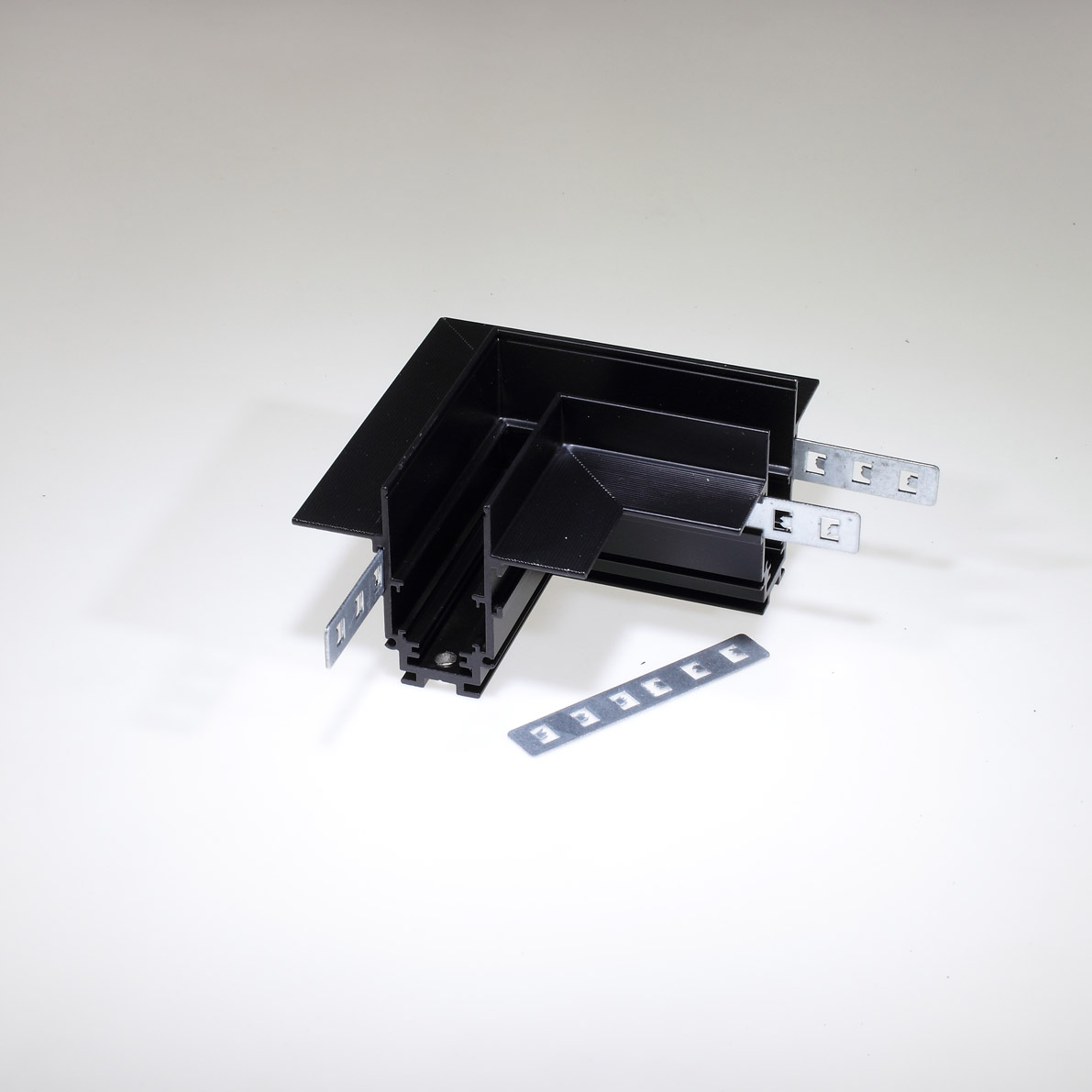 Соединитель угловой. Металлический корпус.Используется для горизонтального углового соединения трека R20. Размеры 100x100x54мм. Вес 160г.