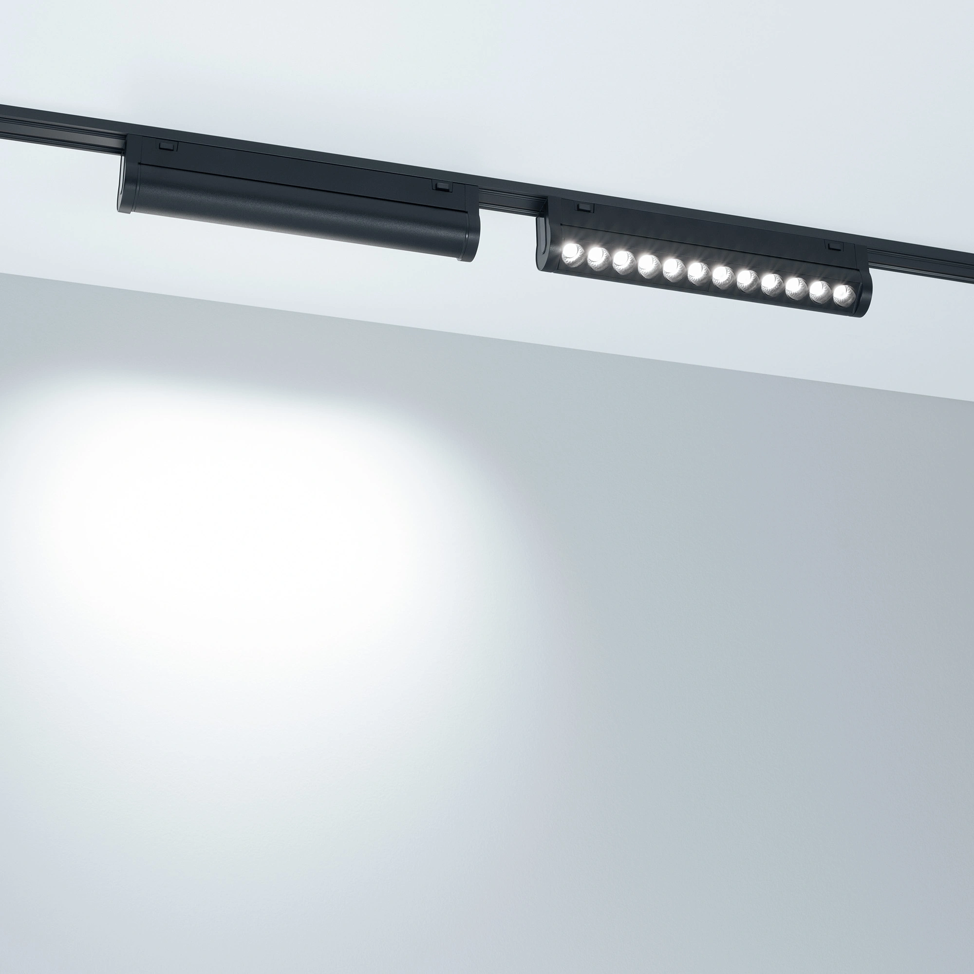 Линейный магнитный светильник MAG-VIBE-LASER-TURN-L209-12W Day4000-MIX (BK, 24 deg, 48V, TUYA Zigbee) мощностью 12 Вт с изменяемой цветовой температурой (2700-5700 К), световой эффективностью 78 лм/Вт. Высокий индекс цветопередачи (CRI>90) и световой поток 935 лм - отличное решение для качественного освещения. Удовлетворяет требованиям проектов, так как обеспечивает наилучшую передачу цветов. Управление разными сценариями, яркостью и цветовой температурой от теплого до холодного оттенка возможно с помощью мобильного приложения через беспроводной шлюз TUYA Zigbee, а дополнительная совместимость с ЯНДЕКС-АЛИСОЙ позволяет с легкостью менять настройки голосовыми командами. Быстрый и надежный монтаж на узкий трек MAG-VIBE, размерами 25 х 7мм и напряжением питания 48В, выполняется с помощью магнитов и механических фиксаторов (драйвер поставляется отдельно). Узкий угол излучения 24° применим для организации направленного освещения. Световой модуль поворачивается на 180°, что позволяет мгновенно отрегулировать и поменять направление света. Минимальный коэффициент пульсации (менее 1%) гарантирует зрительный комфорт без пульсаций. Корпус светильника окрашен в черный цвет и выполнен с защитой от пыли IP20 для применения внутри помещений, где нет контакта с водой или другими жидкостями. Расширенная гарантия до 5 лет указывает на длительную работоспособность системы. Идеально подходит для освещения жилых, офисных, коммерческих и других помещений.