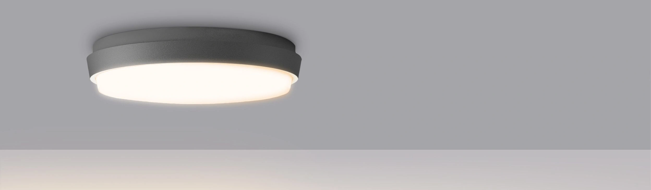 Накладной светильник 10Вт, серый алюминиевый корпус, матовый рассеиватель из поликарбоната. Цвет ТЕПЛЫЙ БЕЛЫЙ 3000K, св.поток 980лм, CRI(Ra)>80, угол 110°. Размер Ф175x45мм. IP54. Питание AC220-240V, 10Вт, встроенный драйвер.