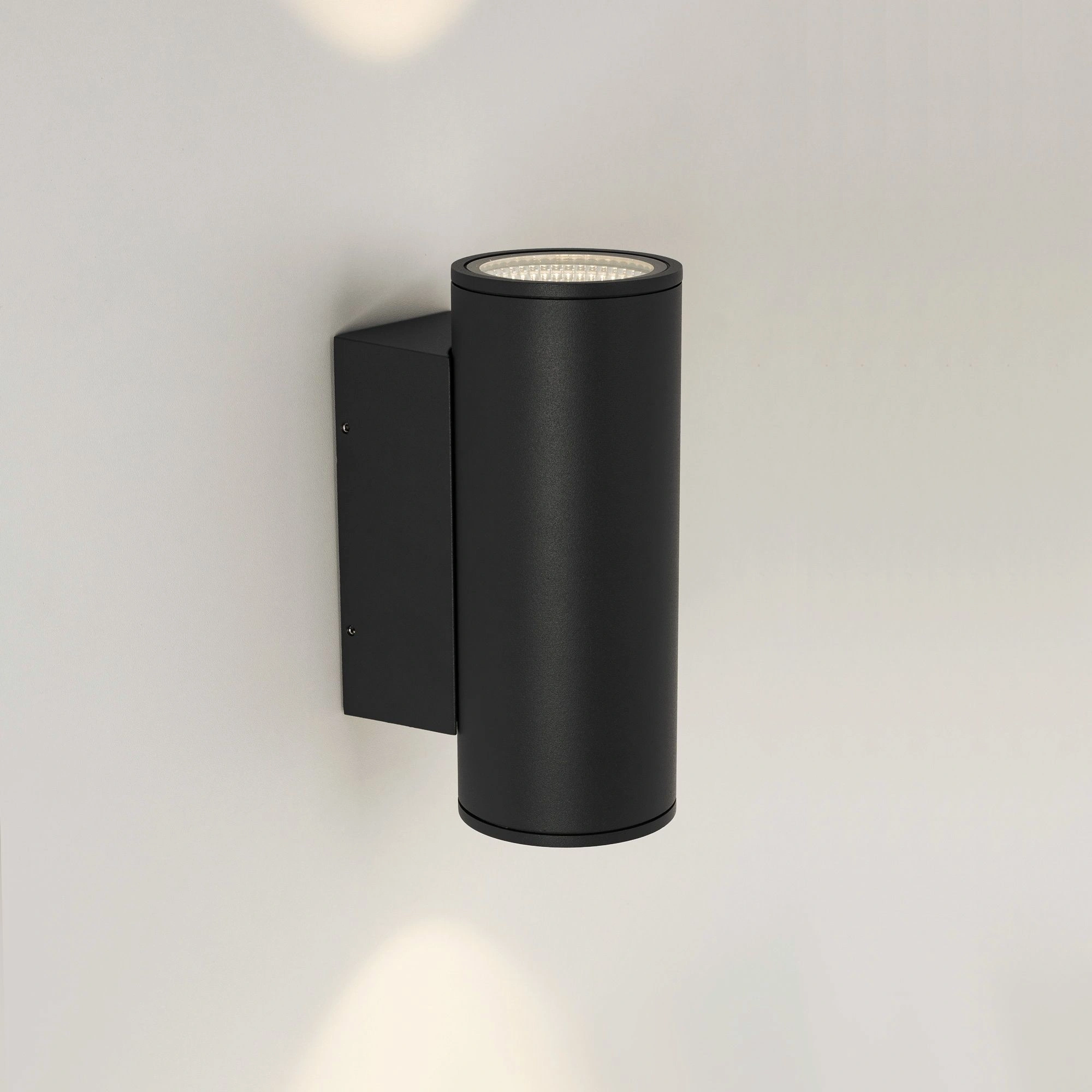 Настенный светильник серии LGD-FORMA-WALL-TWIN с двусторонним свечением теплого белого цвета (3000 К) для архитектурной подсветки. Цилиндрический корпус черного цвета с зеркальными отражателями будет стильно смотреться на фасадах зданий. За счет узкого угла излучения 44° для каждого рассеивателя создается декоративная подсветка стен и колонн. Мощность модели с диаметром светоизлучателей 90 мм составляет 24 Вт, световой поток — 1720 лм. Экраны из оптического закаленного стекла и алюминиевый корпус со степенью пылевлагозащиты IP54 гарантируют прочность светильника и его стабильную эксплуатацию как на открытом воздухе под навесом, так и в помещении.
