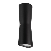 Светодиодный светильник для наружной подсветки стен, свет вверх-вниз. Цвет ДНЕВНОЙ БЕЛЫЙ 4000К, 855Лм, светодиоды 2x6Вт Cree 1304, угол 97°. Влагозащищенный корпус IP54 - черный алюминий, экран закалённое стекло. Питание 230В, мощность 12 Вт. Размеры ДхШхВ -260х90х60 мм.