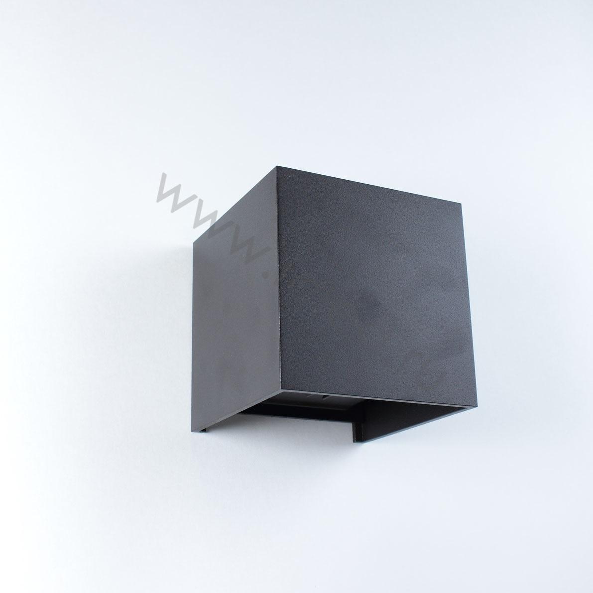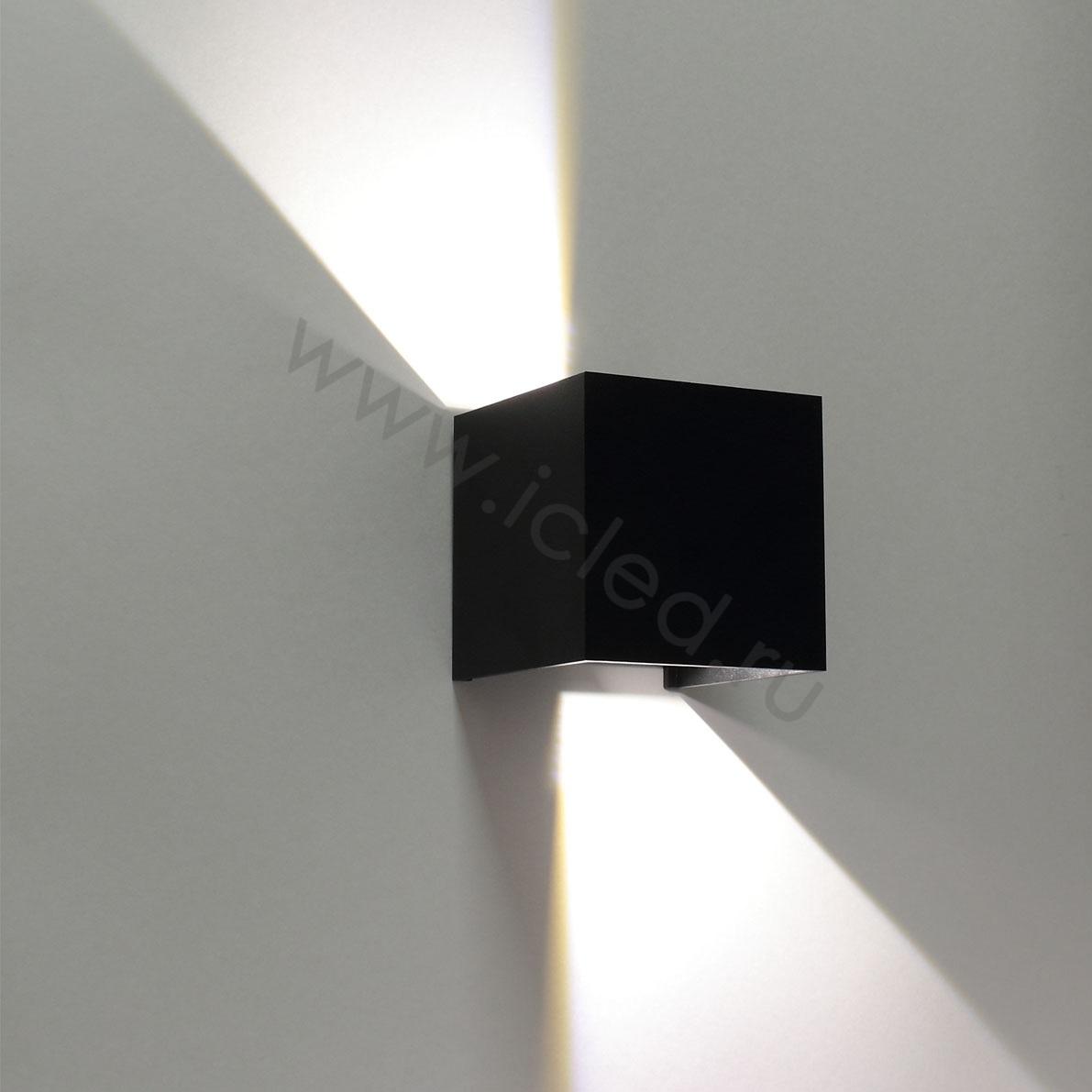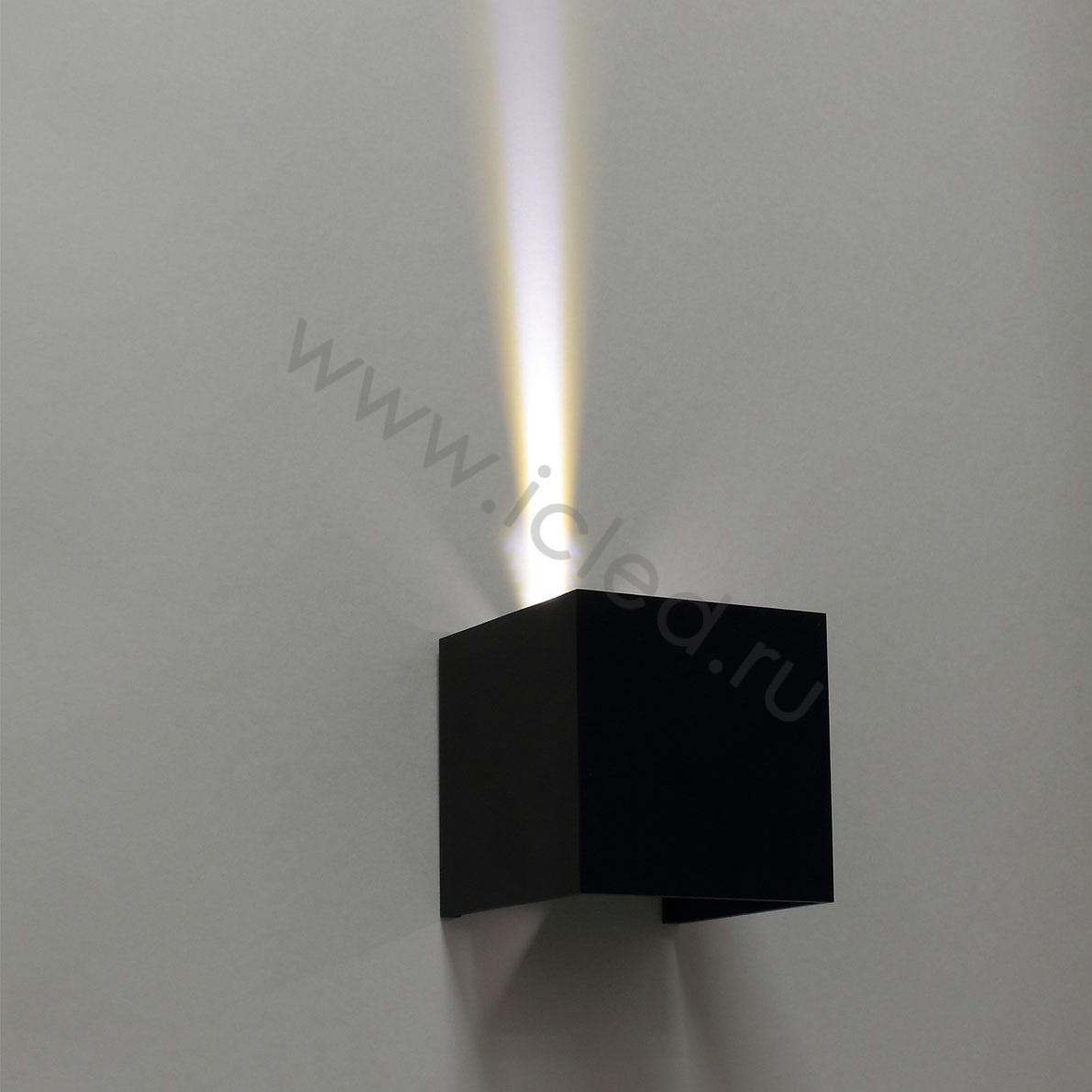 Светодиодный светильник (бра). Корпус черный квадратный алюминиевый. Входное напряжение 85-265V, цвет свечения теплый белый 3000-3500К, мощность 2х3W, световой поток 400lm, изменяемый угол свечения 2х0-90 градусов, класс защиты IP65. Коэффициент цветопередачи >80. Драйвер 12-24В, 300мА. Размеры 100х100х100мм. Вес 700г.