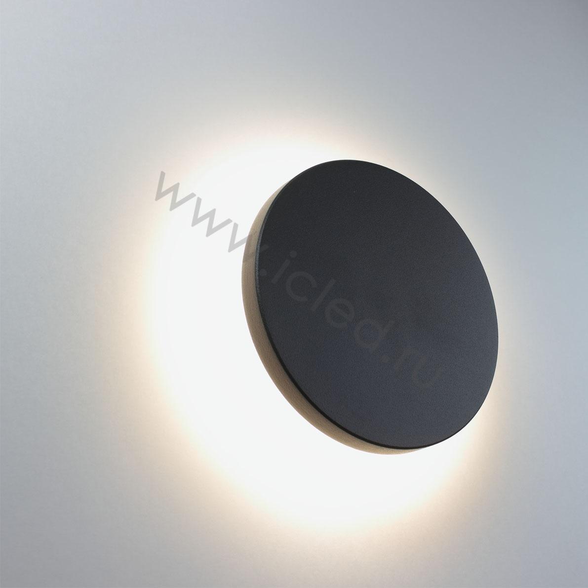 Светодиодный светильник (бра). Корпус серый круглый алюминиевый. Входное напряжение 85-265V, цвет свечения теплый белый 3000-3500К, мощность 12W, световой поток 1020lm, угол свечения 120 градусов, класс защиты IP65. Коэффициент цветопередачи >80. Диаметр 150мм, высота 45мм. Длина кабеля 720мм. Вес 600г.