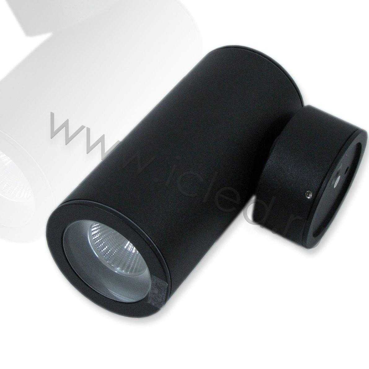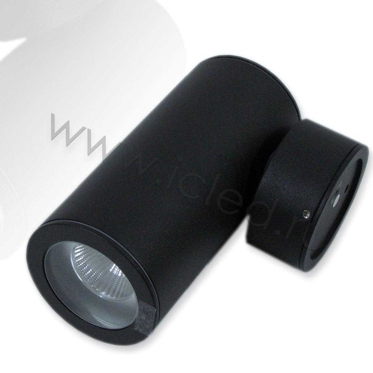 Светодиодный светильник цилиндрический. Корпус анодированный черный. Входное напряжение AC 100-240 V , светодиоды 1 х 9W COB CITIZEN, цвет свечения теплый белый 3000К, световой поток 900 lm, угол свечения 35 градусов, коэффициент CRI >85, класс защиты IP54, материал алюминий. Размеры высота 145 мм, глубина 122 мм, диаметр светильника 80мм.