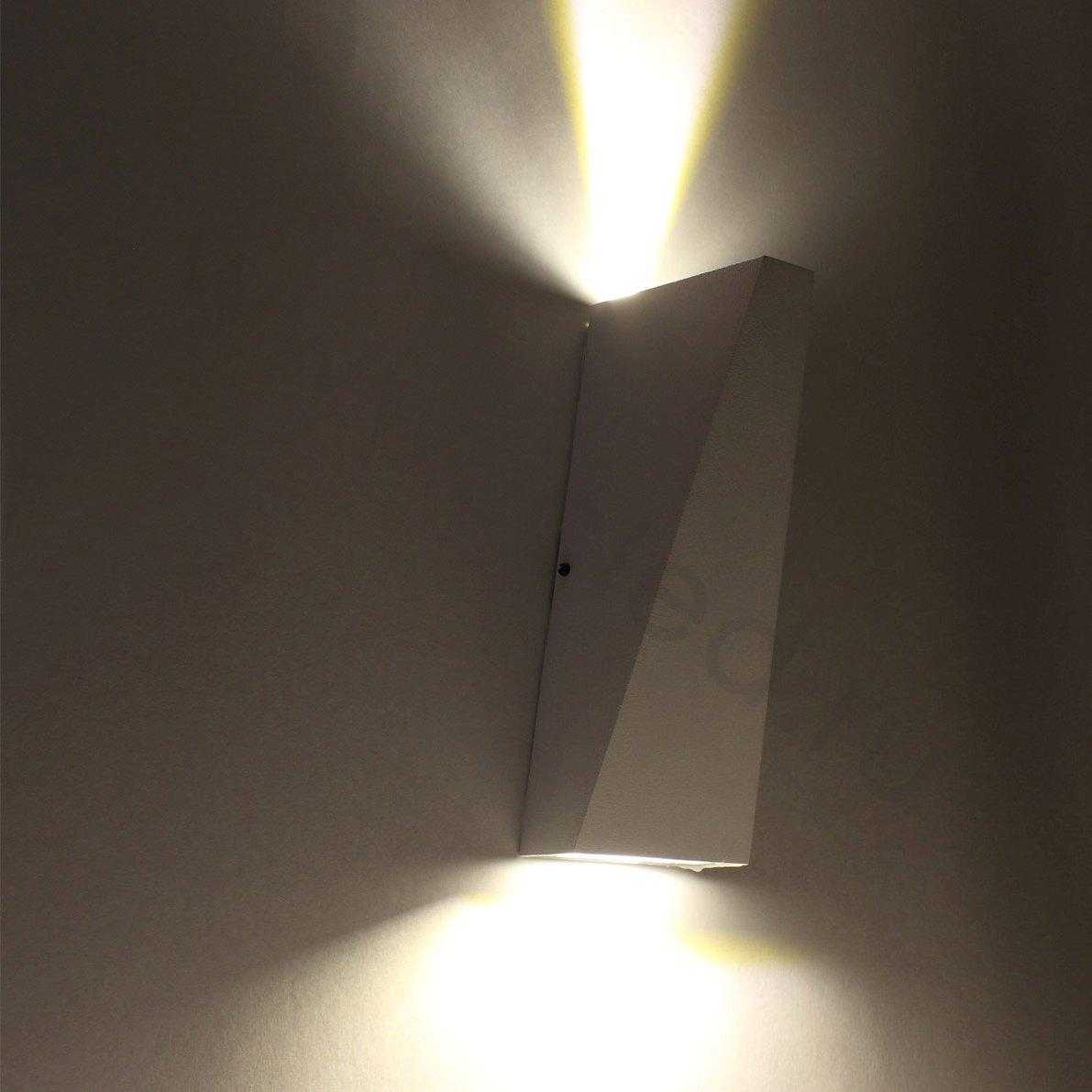 Светодиодный светильник двухлучевой. Корпус белый. Входное напряжение 85-265V, цвет свечения теплый белый 3000-3500К, мощность 2х3W, световой поток 500 lm, угол свечения 15 и 60 градусов, класс защиты IP54, материал алюминий. Драйвер 12-26V, 240mA. Размеры 85x85x200мм. Вес 580г.