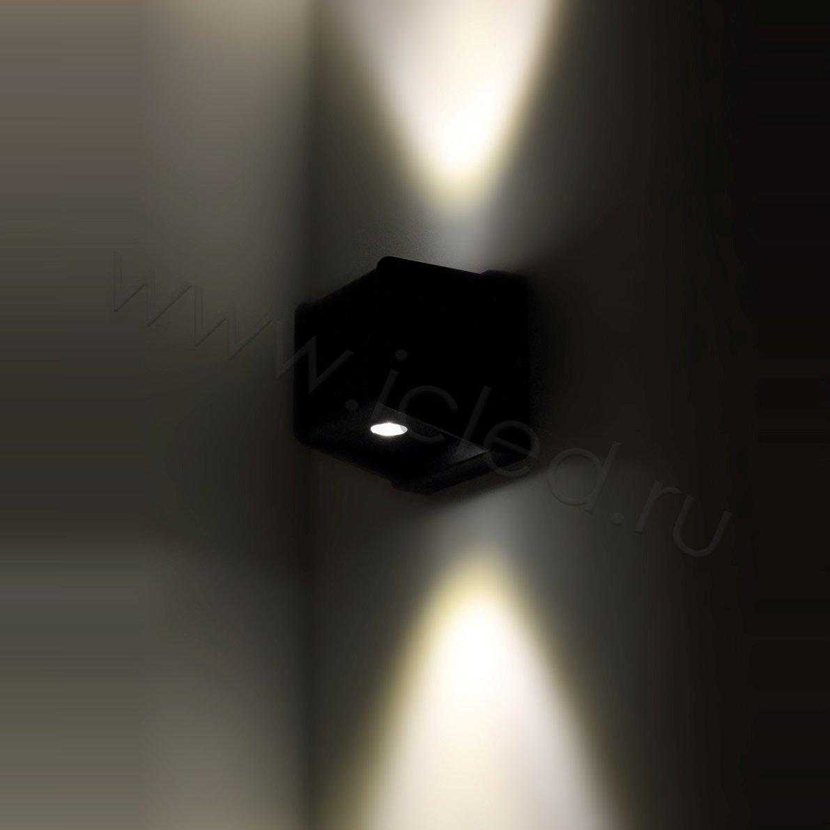 Светодиодный светильник двухлучевой. Корпус черный матовый. Входное напряжение 90-260V , светодиоды 2х1W, цвет свечения теплый белый 3000-3500К, мощность 2W, угол свечения 30 градусов, световой поток 200 lm, класс защиты IP54, материал алюминий. Размеры 110x110x96мм. Вес 520г.