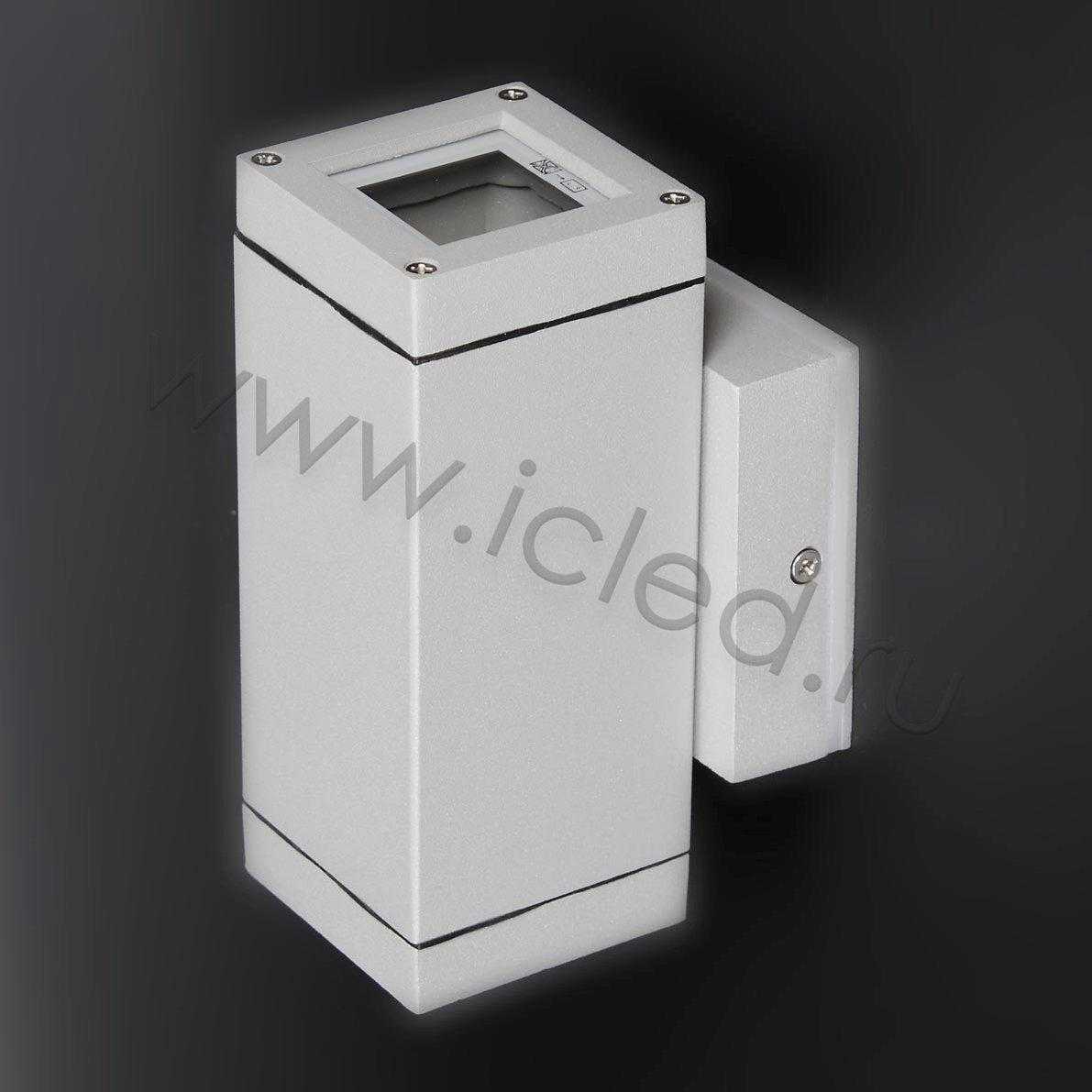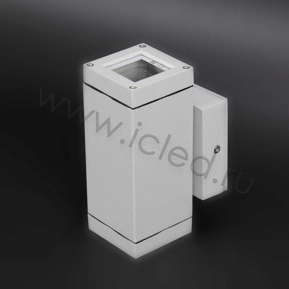 Светодиодный светильник двухлучевой. Корпус серый. Входное напряжение 220V , Цоколь GU10 для установки ламп до 35Вт, 2 штуки (лампа в комплект не входит), класс защиты IP54, материал алюминий. Размеры 64x153x92мм. Кронштейн 85x85мм.