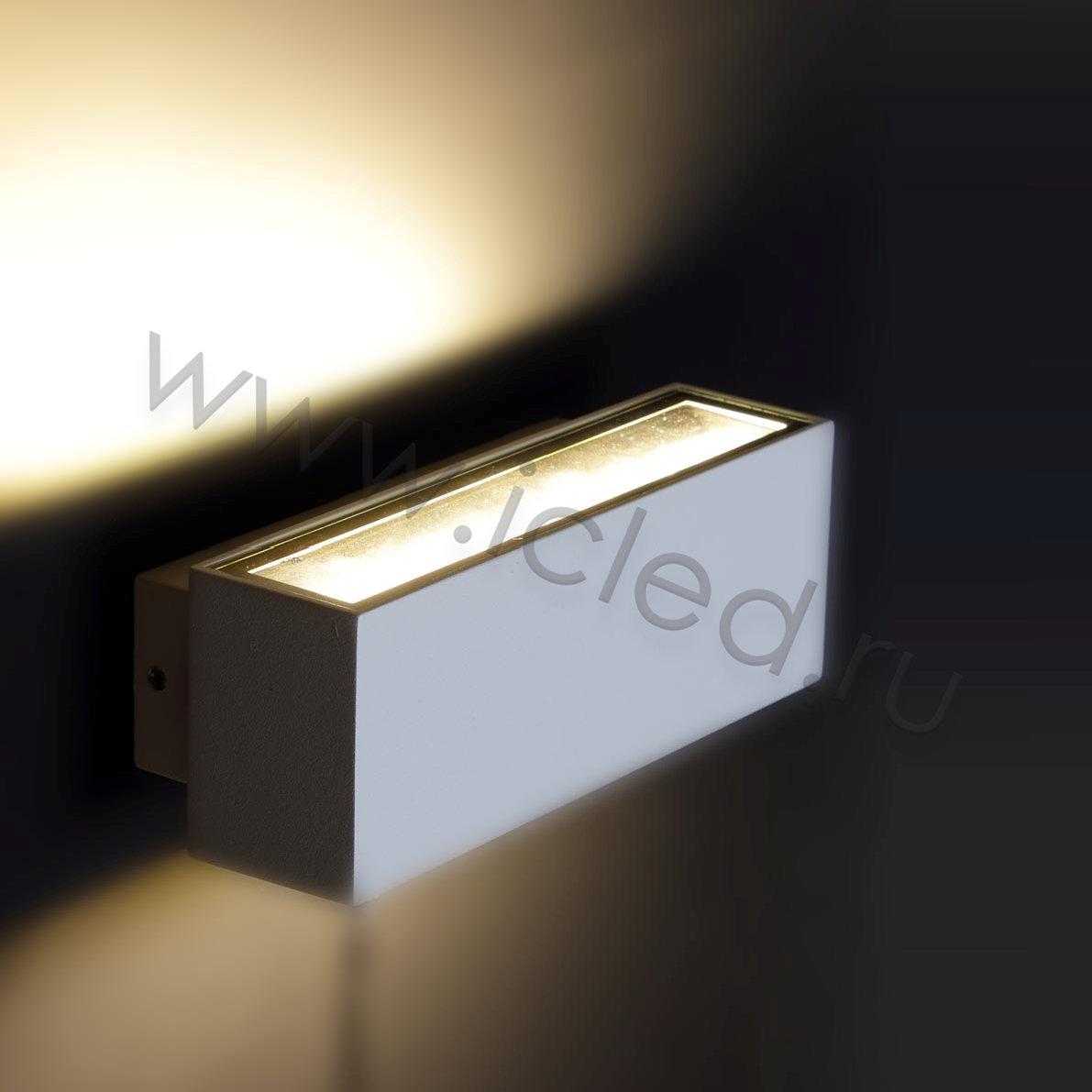 Светодиодный светильник двухлучевой. Корпус белый. Входное напряжение 220V , светодиоды 2835, 60штук, цвет свечения теплый белый 3000К, мощность 12W, угол свечения 120 градусов, световой поток 1000 lm, класс защиты IP54, материал алюминий. Размеры 180x68x70мм.