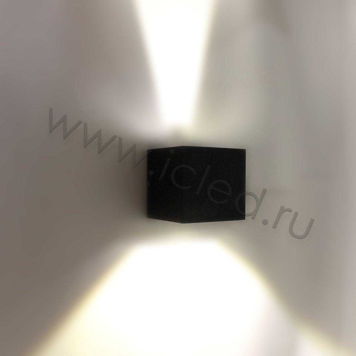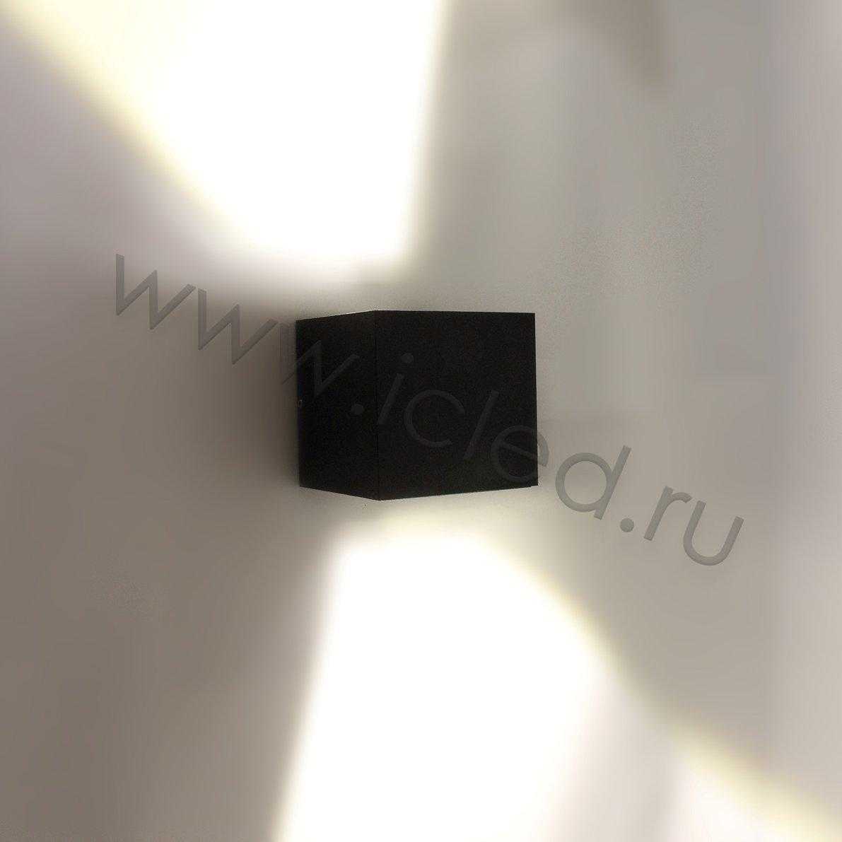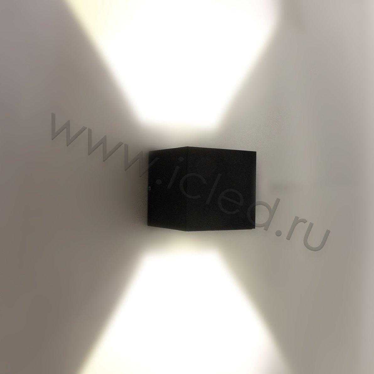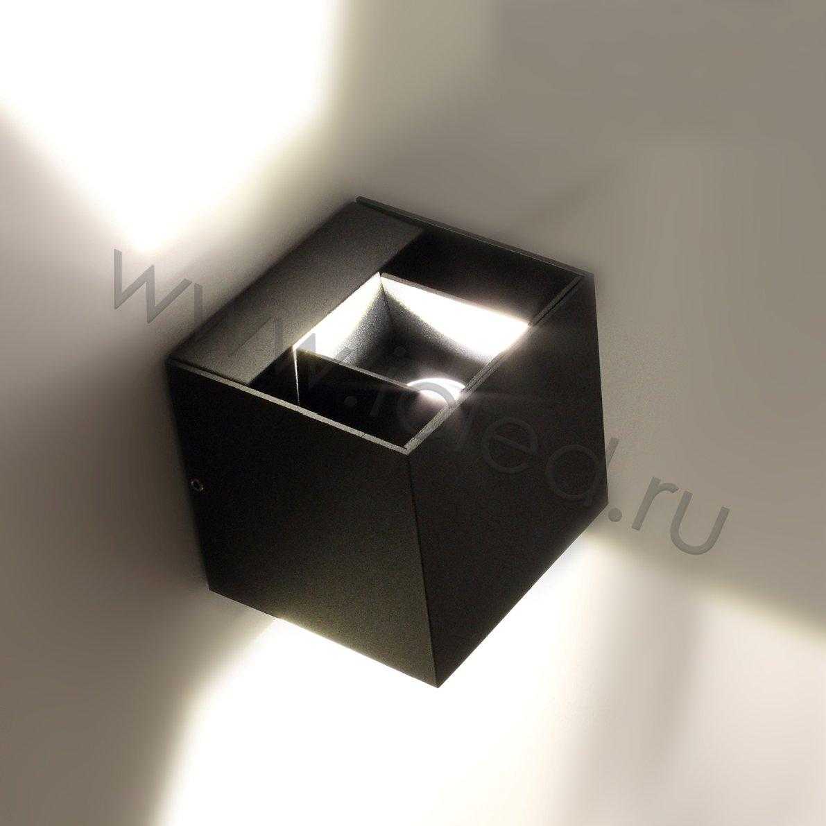 Светодиодный светильник настенный. Корпус черный матовый. Входное напряжение 220-240V , светодиоды Cree 2х3W, цвет свечения теплый белый 3000-3500К, мощность 6W, световой поток 500 lm, регулируемый угол свечения от 30 до 120 градусов (зависимые шторки на верхний и нижний светодиоды), класс защиты IP54, материал алюминий. Размеры 90x98x92мм. Вес 580г.