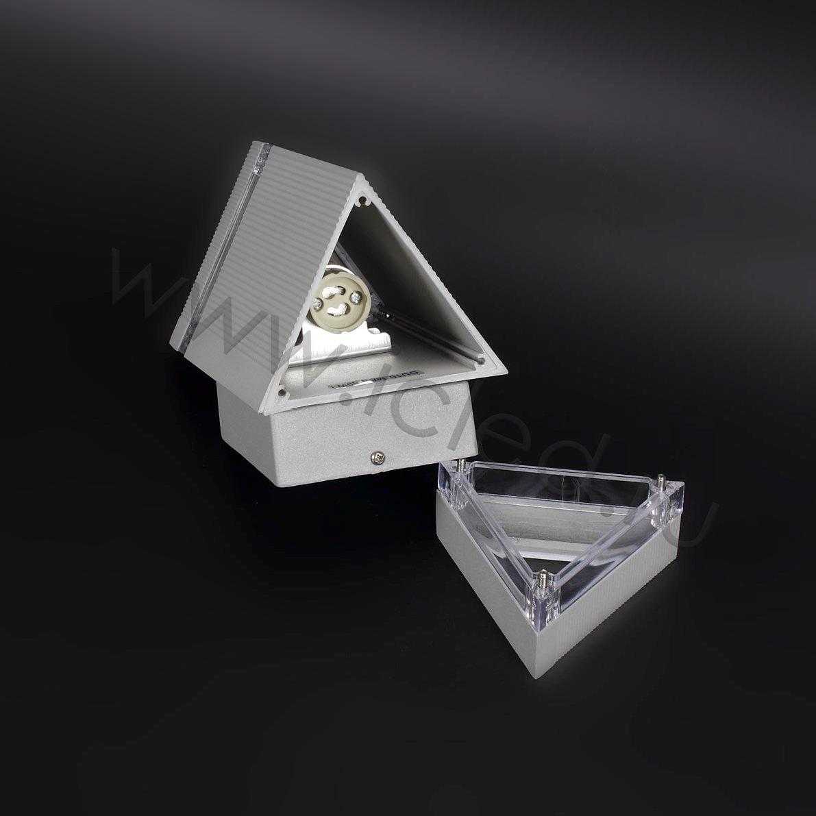 Светодиодный светильник двухлучевой. Корпус серый. Входное напряжение 220V , Цоколь GU10 для установки ламп до 50Вт, 2штуки (лампа в комплект не входит), класс защиты IP54, материал алюминий. Размеры 108x245x130мм.