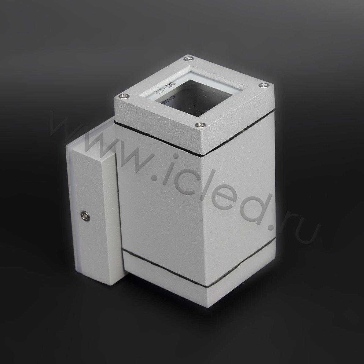 Светодиодный светильник. Корпус серый. Входное напряжение 220V , Цоколь GU10 для установки ламп до 35Вт (лампа в комплект не входит), класс защиты IP54, материал алюминий. Размеры 63x120x90мм. Кронштейн 85x85мм.