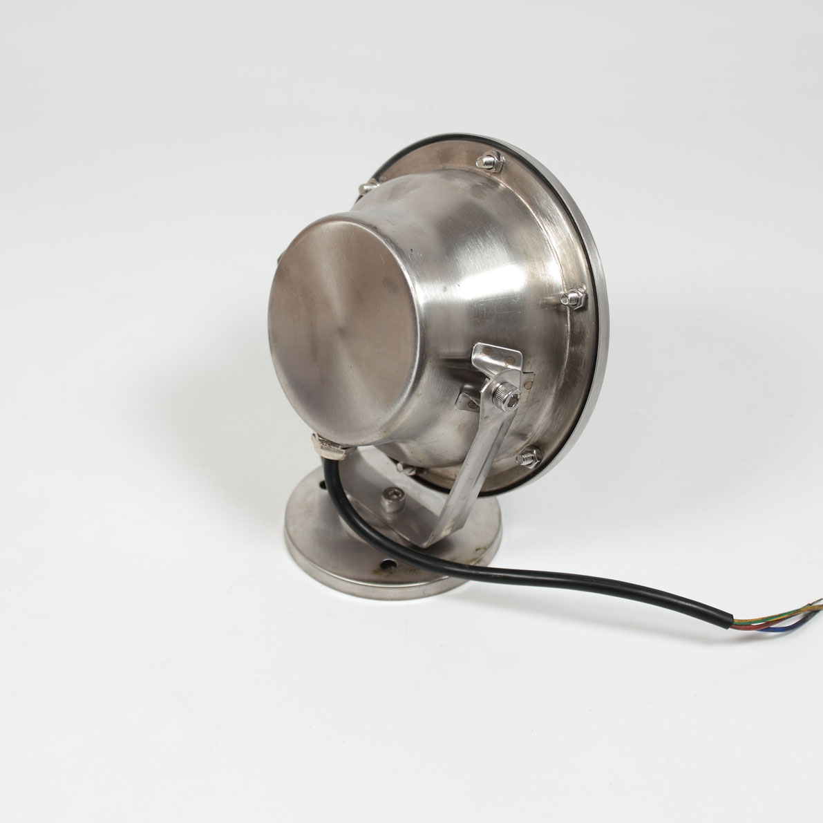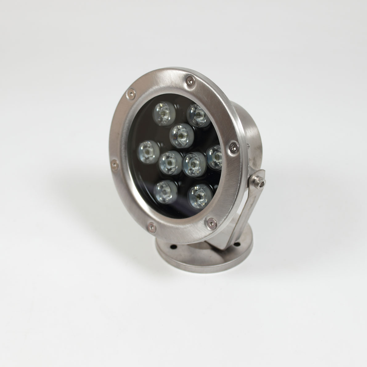 Светодиодный светильник. Входное напряжение AC 85-265 V , светодиоды 9 х 1W, цвет свечения белый 6000-6500К, угол свечения 30 градусов, класс защиты IP65, материал нержавеющая сталь. Диаметр 143 мм. Установочный диаметр 89мм. Вес 780г.