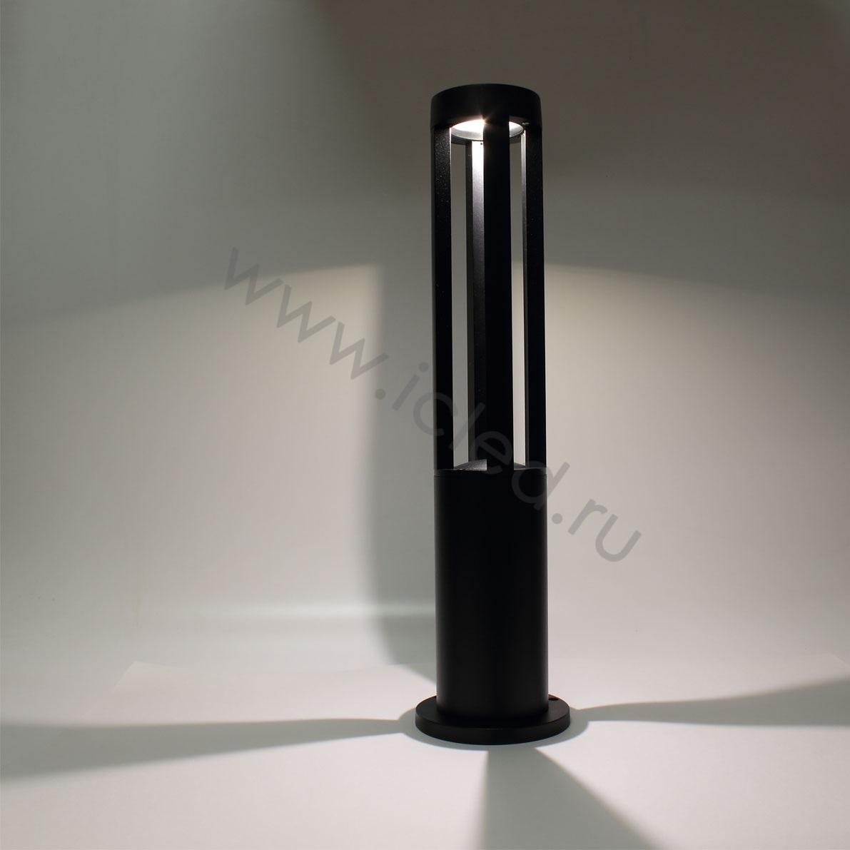 Светодиодный светильник уличный. Корпус цилиндрический черный матовый алюминиевый. Входное напряжение 85-265V, цвет свечения теплый белый 3000-3500К, мощность 7W, световой поток 700lm, угол свечения 120 градусов, класс защиты IP65. Коэффициент цветопередачи >80. Диаметр светильника 110мм, высота 600мм, диаметр основания 150мм. Вес 2100г.