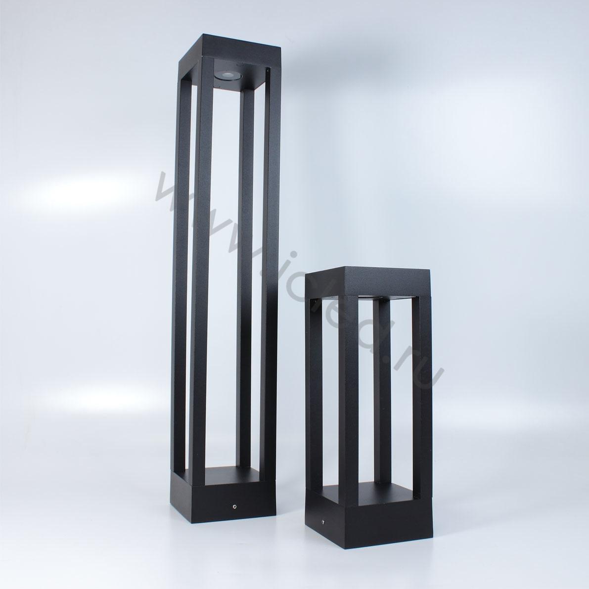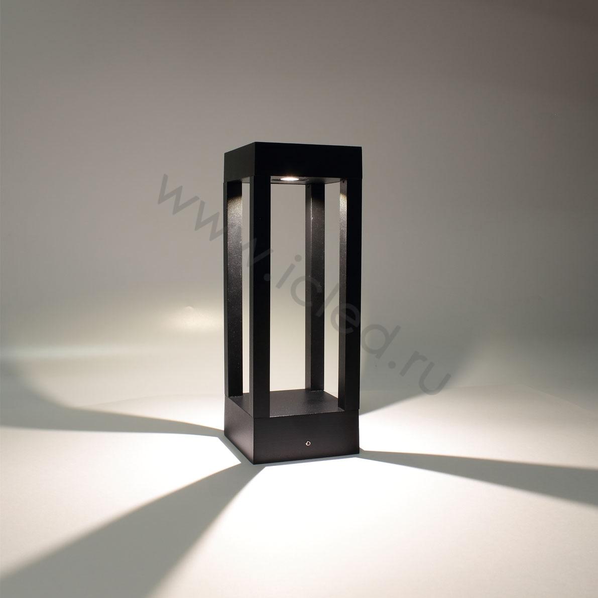 Светодиодный светильник уличный. Корпус черный матовый алюминиевый. Входное напряжение 85-265V, цвет свечения теплый белый 3000-3500К, мощность 7W, световой поток 700lm, угол свечения 120 градусов, класс защиты IP65. Коэффициент цветопередачи >80. Драйвер находится в верхней части светильника. Размеры 110х110х300мм. Вес 1000г.