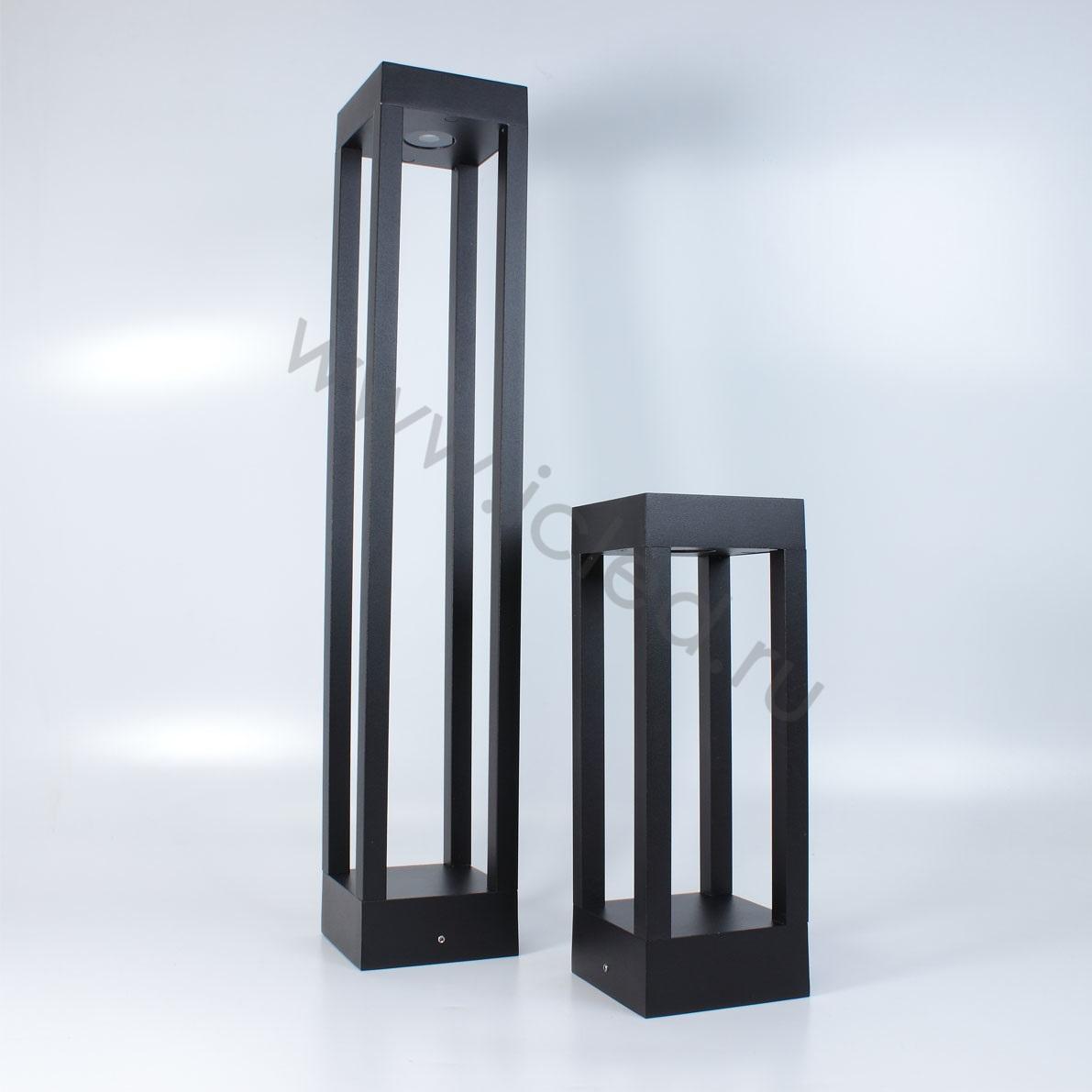Светодиодный светильник уличный. Корпус черный матовый алюминиевый. Входное напряжение 85-265V, цвет свечения теплый белый 3000-3500К, мощность 7W, световой поток 700lm, угол свечения 120 градусов, класс защиты IP65. Коэффициент цветопередачи >80. Драйвер находится в верхней части светильника. Размеры 110х110х600мм. Вес 1400г.