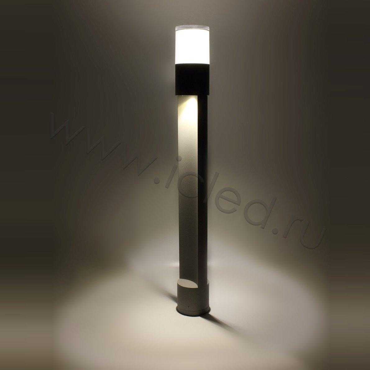 Светодиодный столб ландшафтный. Корпус серый алюминиевый, порошковая краска. Входное напряжение AC 220 V, мощность 6W, цвет свечения теплый белый 3000-3500К, световой поток 600 lm, угол свечения 360 градусов, класс защиты IP54. Диаметр 90мм, высота 800мм. Вес 2300г.